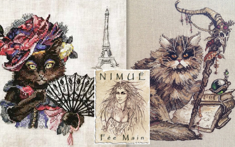 Знали ли вы, что именно коты чаще покупаются французскими вышивальщицами? Если российские вышивальщицы ценят дизайнера за большие и сложные фантазийные полотна-портреты, то соотечественницы Аннаик хотят иметь небольшой дизайн, который можно быстро и легко вышить. И даже оформить в прикладное изделие. Ведь в каждом дизайне NIMUE не так много цветов, немного бека, парочка шармов или одна-две спецнитки.