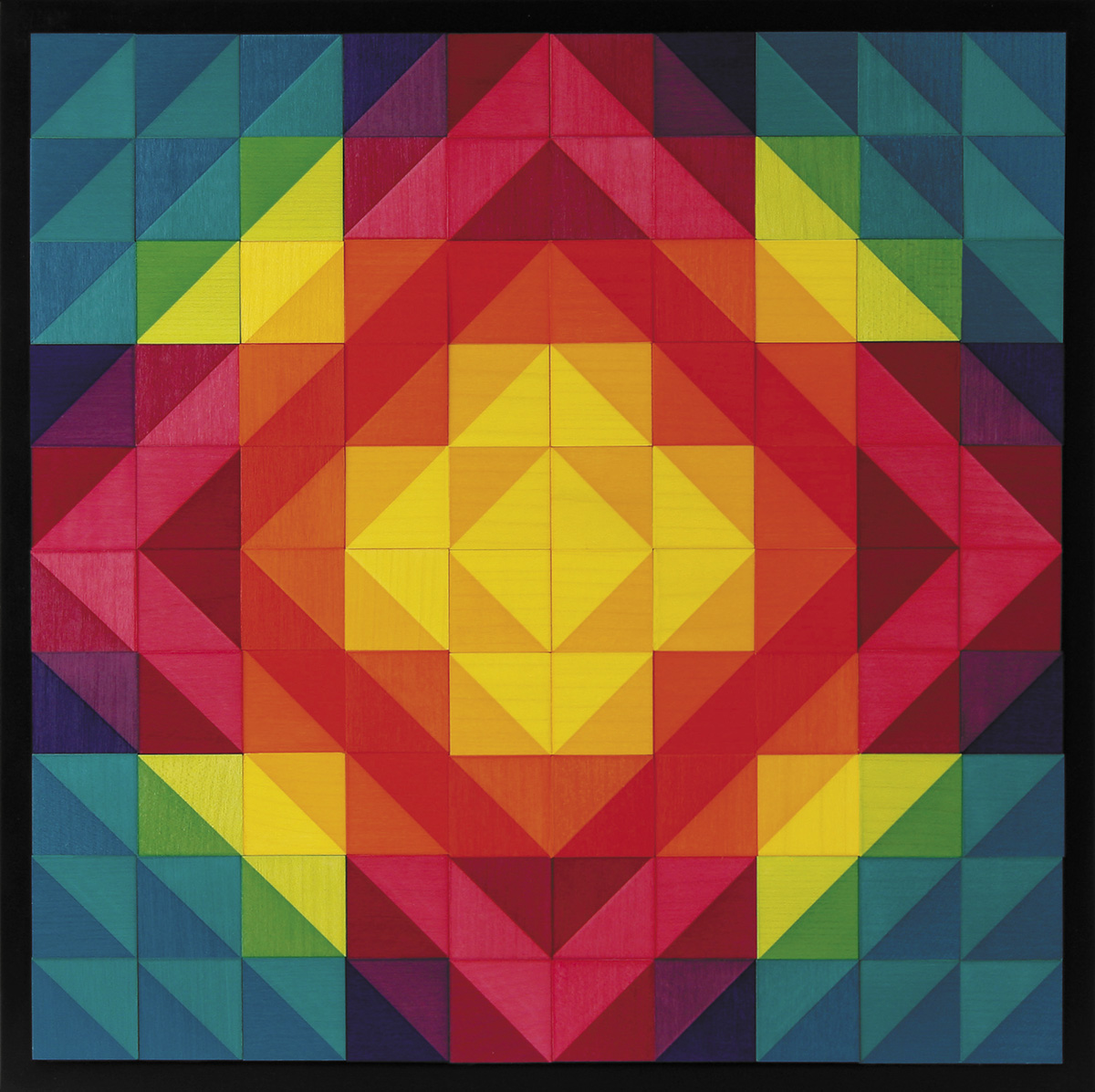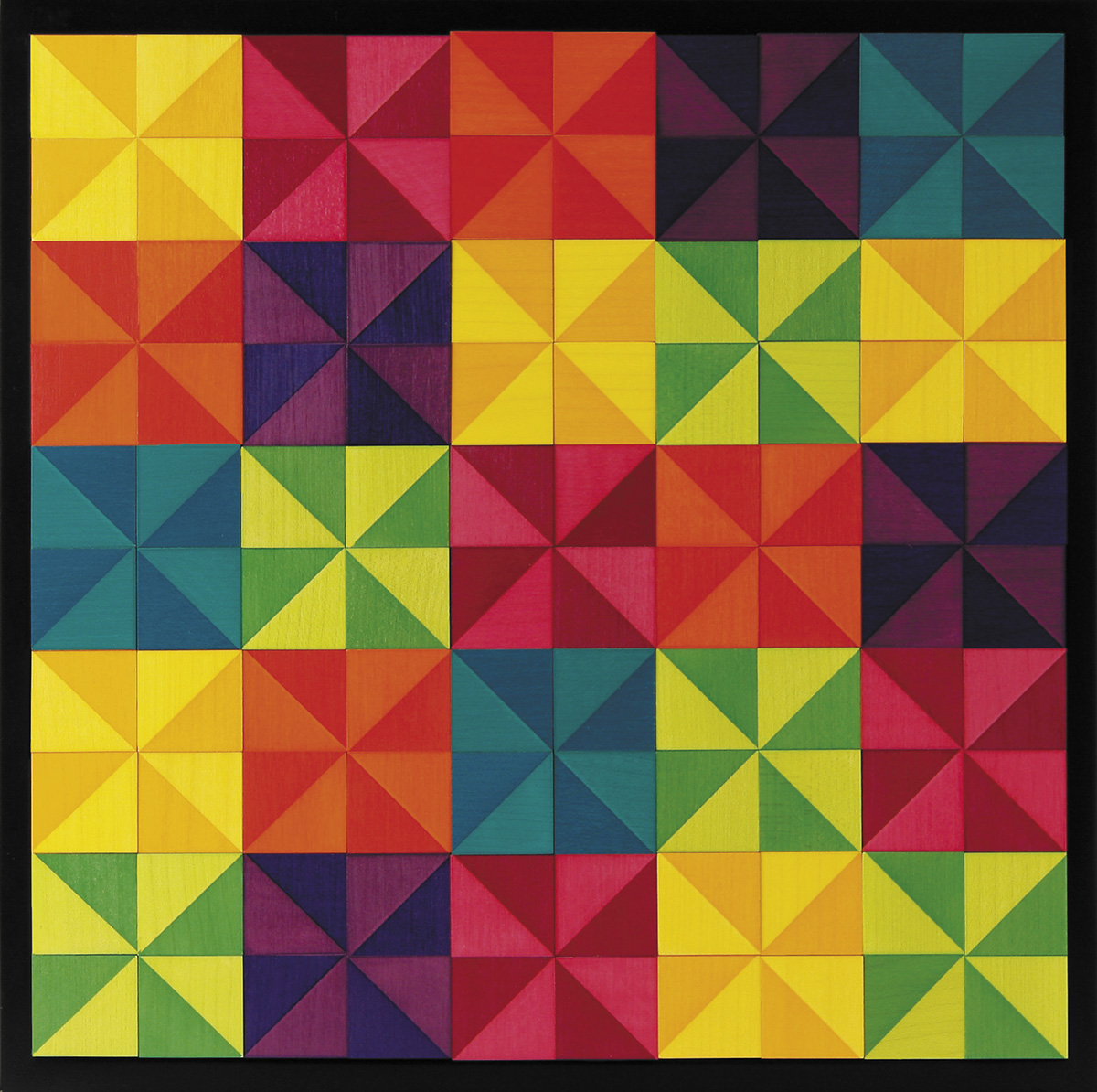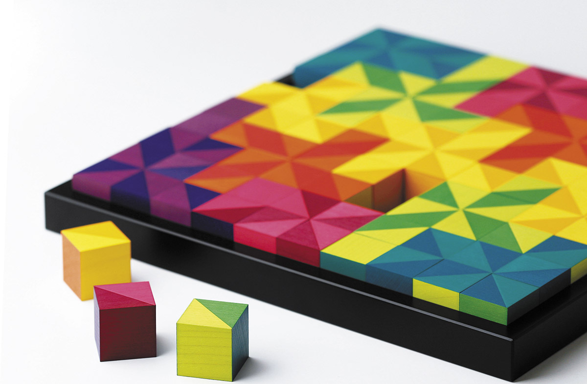 Дизайнерская мозаика ""Mosaik"" - это 100 кубиков со сторонами 2,5 см, выполненных из натурального дерева (клена), - квадрат со сторонами из 10-ти кубиков. Всего 3 разных по дизайну кубика составляют ассортимент всей мозаики. Поскольку каждый из 3-х кубиков состоит из 6-ти разных поверхностей, мы имеем восемнадцать различных вариантов цветов, шесть из которых разделены по диагонали на два цветовых тона. Эта уникальная форма в сочетании с ясностью и чистотой цветов побуждает игрока создавать бесчисленные новые вариации разноцветных фейерверков. Уникальность мозаики, а имеено её составляющих - кубиков, состоит также в идеальной обработке дерева: даже при близком рассмотрении можно не увидеть в узоре границы между двумя кубиками, её видно только благодаря различию в цвете. Подходит для всех возрастов, начиная с 6-ти лет. Дизайнер ""Mosaik"" - Кэтрин Кинер.
