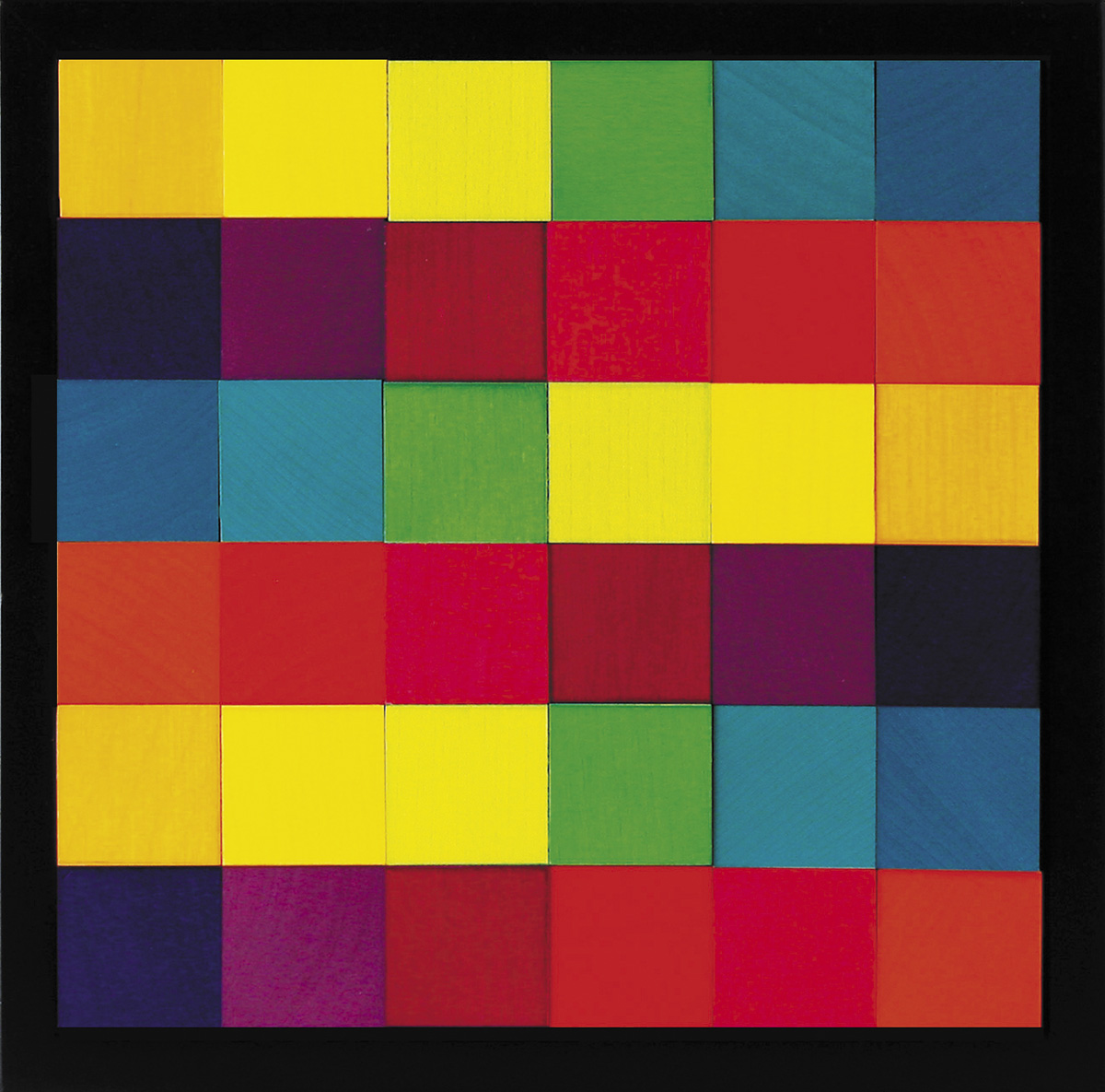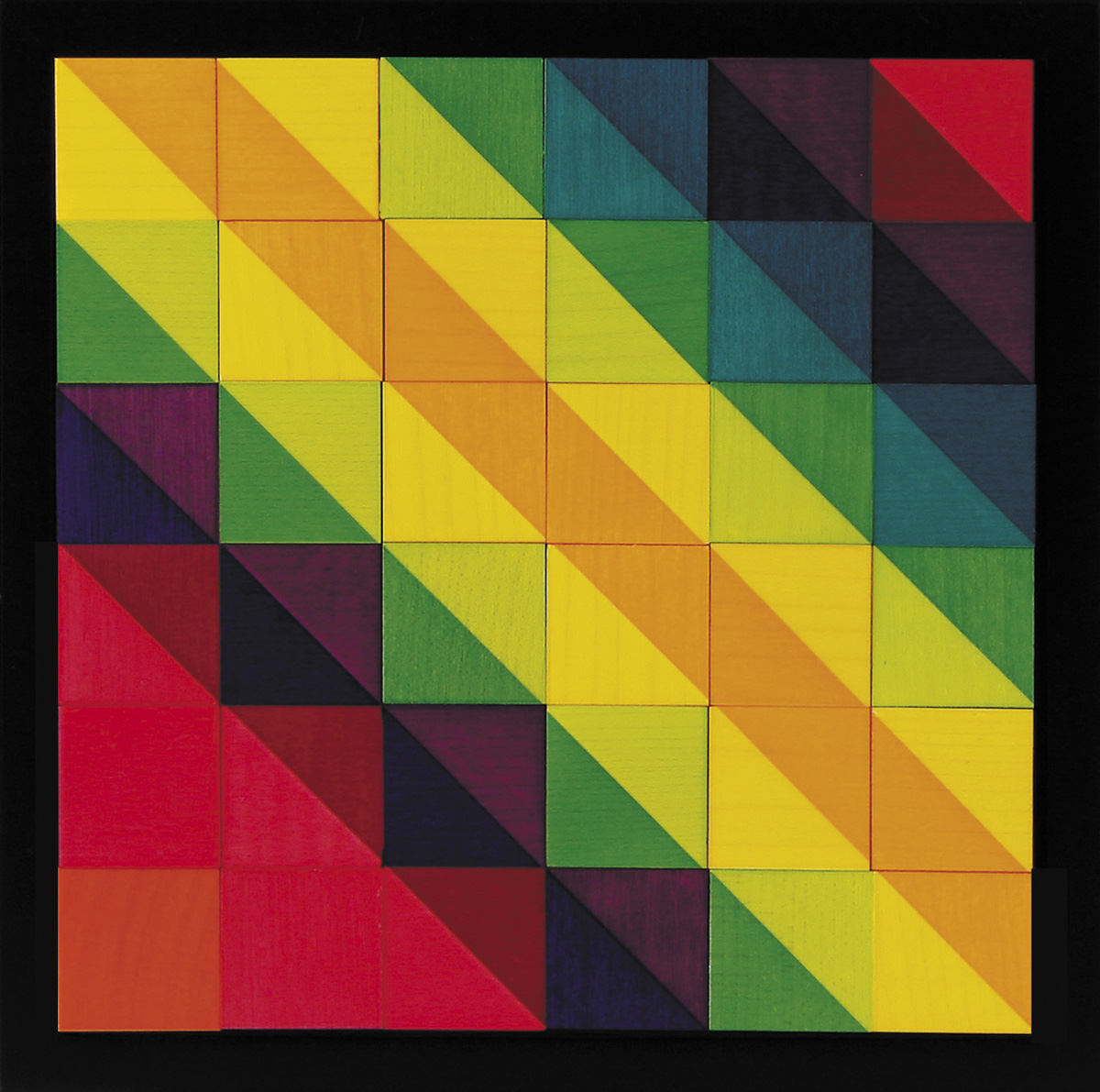 Дизайнерская мозаика "Mosaik" - это 36 кубиков со сторонами 2,5 см, выполненных из натурального дерева (клена), - квадрат со сторонами из 6-ти кубиков. Всего 3 разных по дизайну кубика составляют ассортимент всей мозаики. Поскольку каждый из 3-х кубиков состоит из 6-ти разных поверхностей, мы имеем восемнадцать различных вариантов цветов, шесть из которых разделены по диагонали на два цветовых тона. Эта уникальная форма в сочетании с ясностью и чистотой цветов побуждает игрока создавать бесчисленные новые вариации разноцветных фейерверков. Уникальность мозаики, а имеено её составляющих - кубиков, состоит также в идеальной обработке дерева: даже при близком рассмотрении можно не увидеть в узоре границы между двумя кубиками, её видно только благодаря различию в цвете. Подходит для всех возрастов, начиная с 6-ти лет. Дизайнер "Mosaik" - Кэтрин Кинер.
