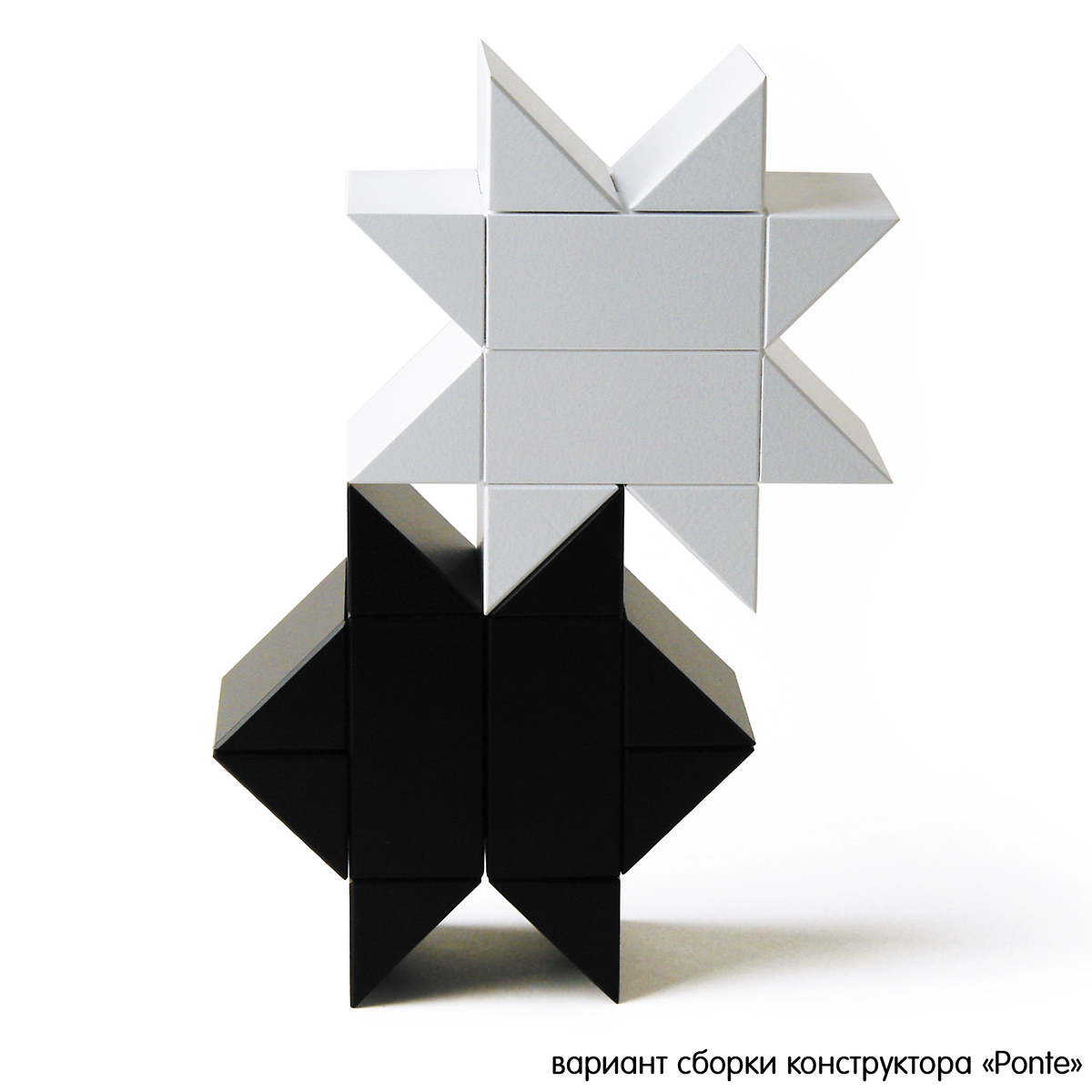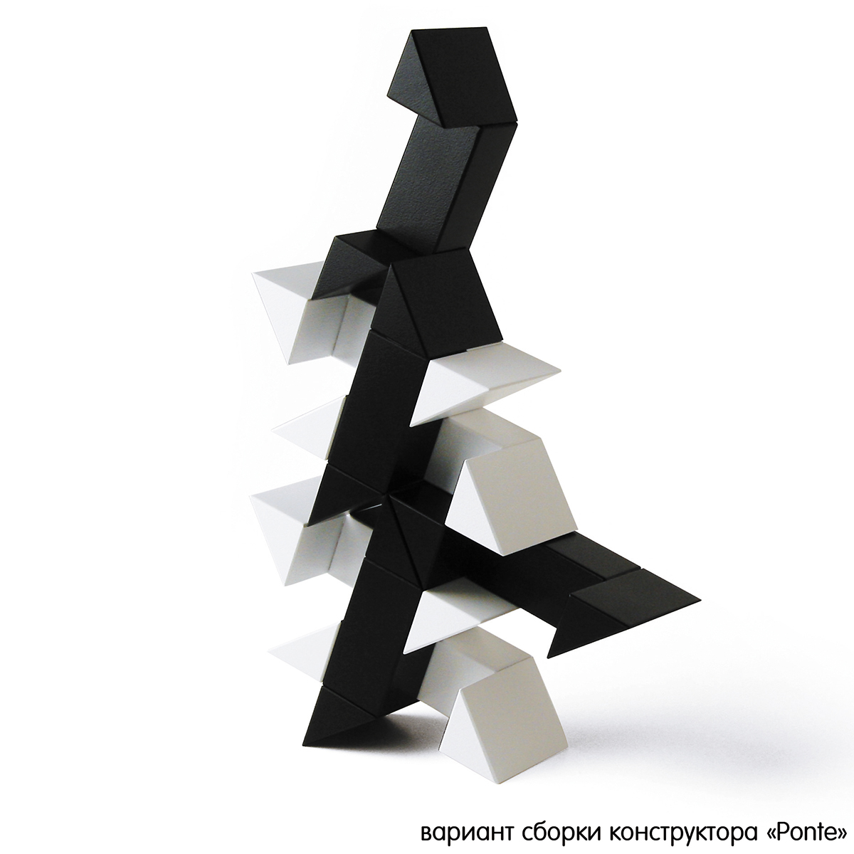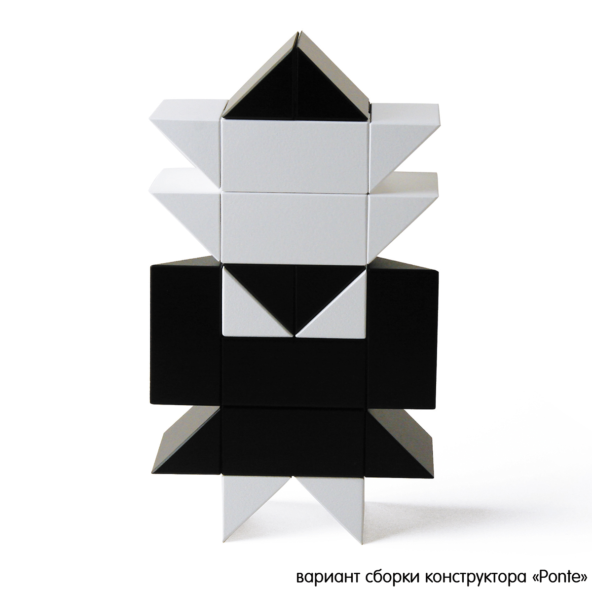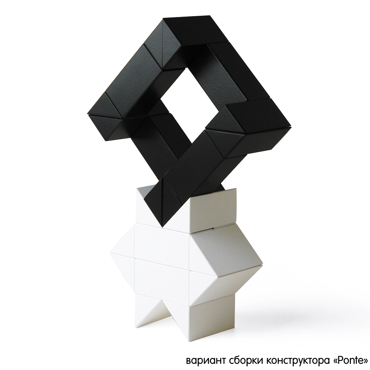 В конструкторе Понте 8 элементов, очень похожих на мосты, можно объединять в бесконечно новые комбинации. Как утверждают дизайнеры этого конструктора: Жизнь – это строительство мостов, а игра - это наведение мостов, и Понте наглядно демонстрирует это. Чёрно-белая версия конструктора имеет свою особую привлекательность и стиль, и игра становится действительно интересной, когда чёрный и белый цвета при новом ""строительстве"" сочетаются и контрастируют друг с другом. Количество вновь придуманных комбинаций из 8-ми деталей ограничено только фантазией игрока.Размеры конструктора Понте: 14,5 х 7,5 х 5 см. Конструктор подходит для детей от 6 лет.