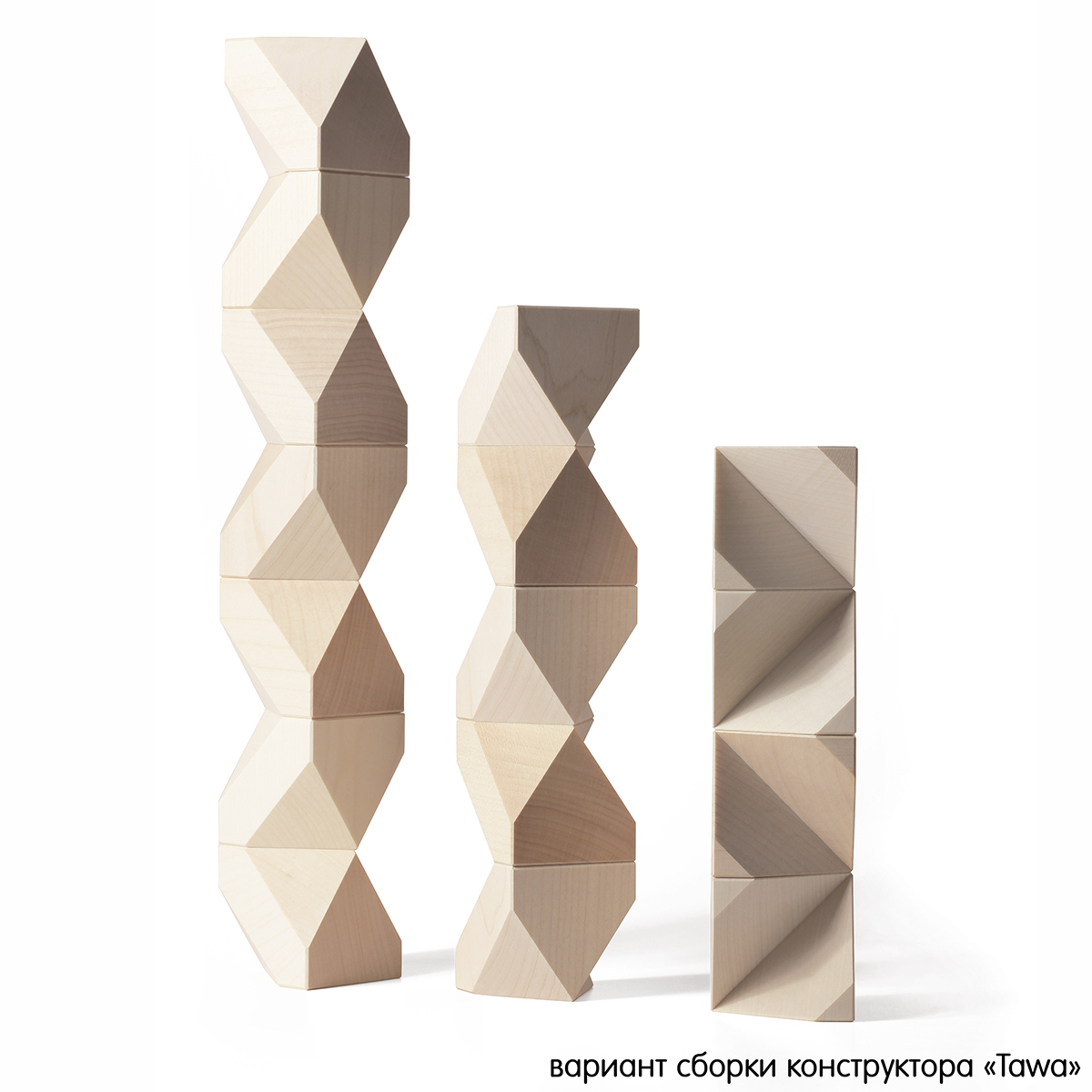 Конструктор Tawa состоит из 16-ти необычных угловатых строительных блоков, которые выполнены из натурального дерева (клёна). Блоки TAWA раскрывают свой потенциал, как только вы начинаете с ними играть. В результате получаются поразительные узоры и конструкции с удивительными эффектами. Вариантов может быть бесконечно много, они зависят лишь от фантазии игрока. Tawa является прекрасным дополнением, поскольку каждый блок остается высотой 50 мм независимо от того, как он расположен, и поэтому его можно комбинировать с другими строительными блоками Naef. Все части конструктора идеально и гладко обработаны. В собранном виде конструктор имеет размеры 20 х 20 х 5 см. Подходит для детей 3+.