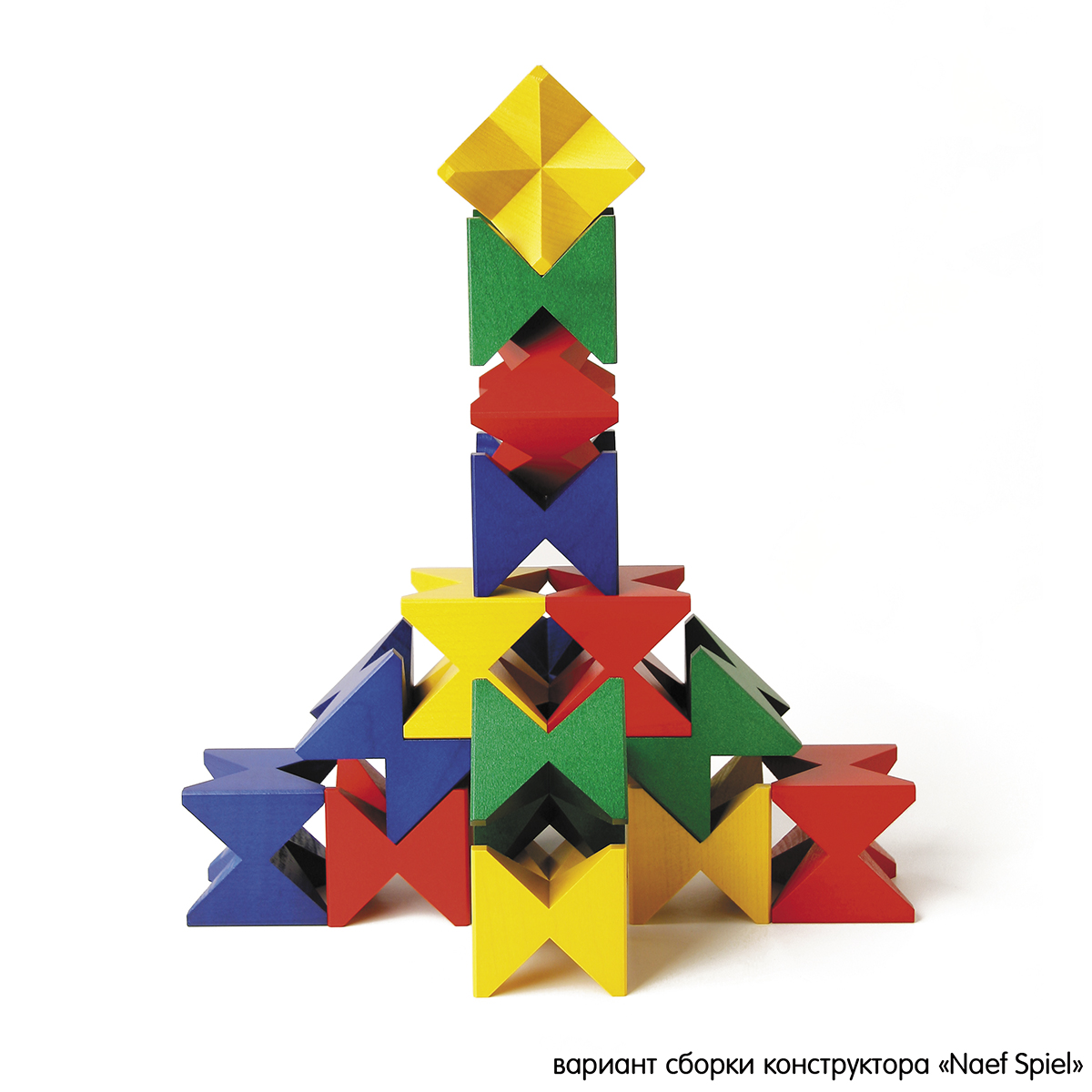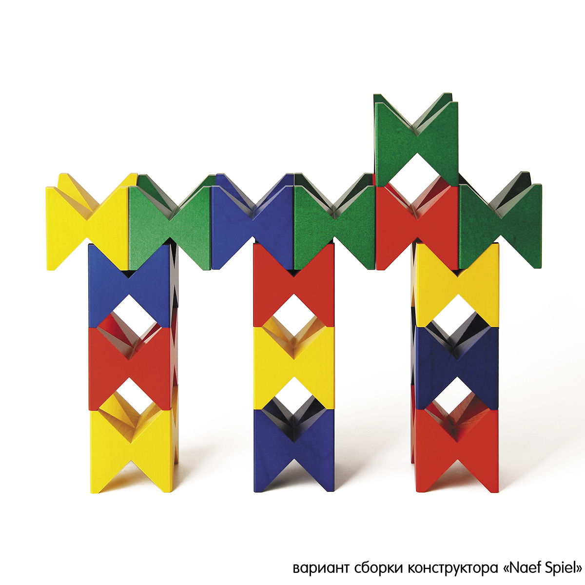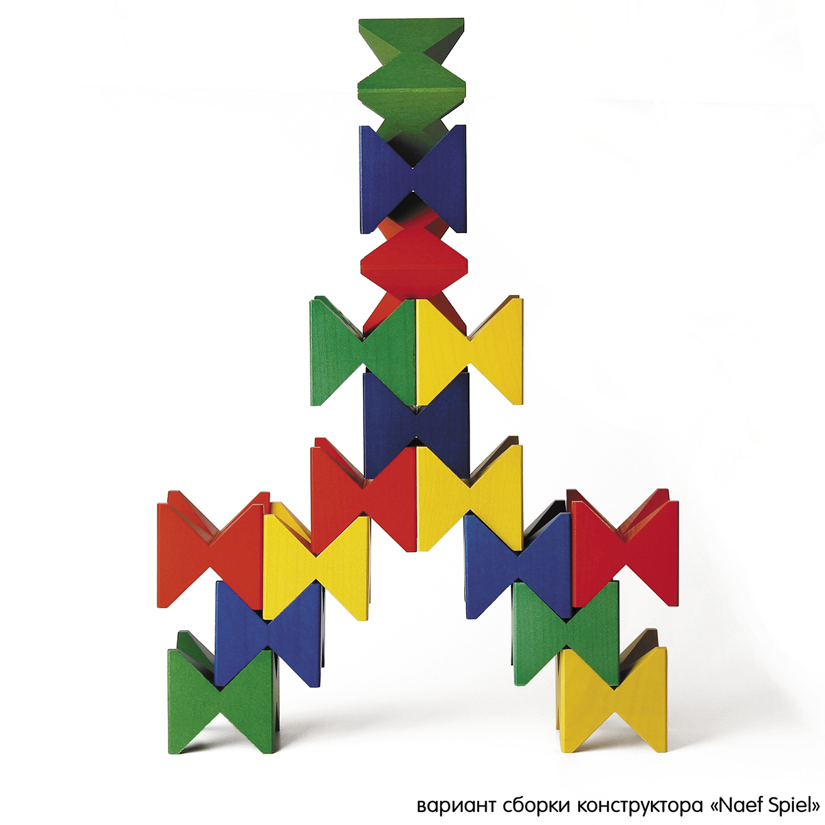 Красиво и стильно упакованная, любая деревянная игрушка Naef может служить превосходным и необычным подарком. Конструктор ""Spiel"" от Naef - одна из первых разработок основателя компании Курта Наефа (1954г.) и является краеугольным камнем компании Naef. Конструктор состоит из шестнадцати деревянных строительных блоков с восемью угловатыми ”зубцами"" в виде бабочек, которые можно соединять вместе, образуя конструкции в шахматном порядке, такие как мосты и башни, которые сверху могут быть еще шире, чем у основания. С помощью этих идеально обработанных блоков можно создавать очень сложные конструкции, которые постоянно стимулируют творческие способности ребенка. Эта версия конструктора ""Spiel"" даёт широкое представление о мире дерева. Светлый клен, ясень с характерными годичными кольцами, редко используемый сладкий каштан, бук, вязь от желтоватого до красно-коричневого, копченая акация, дуб и драгоценный орех делают эту игру захватывающей. Подходит для взрослых и детей 6+.