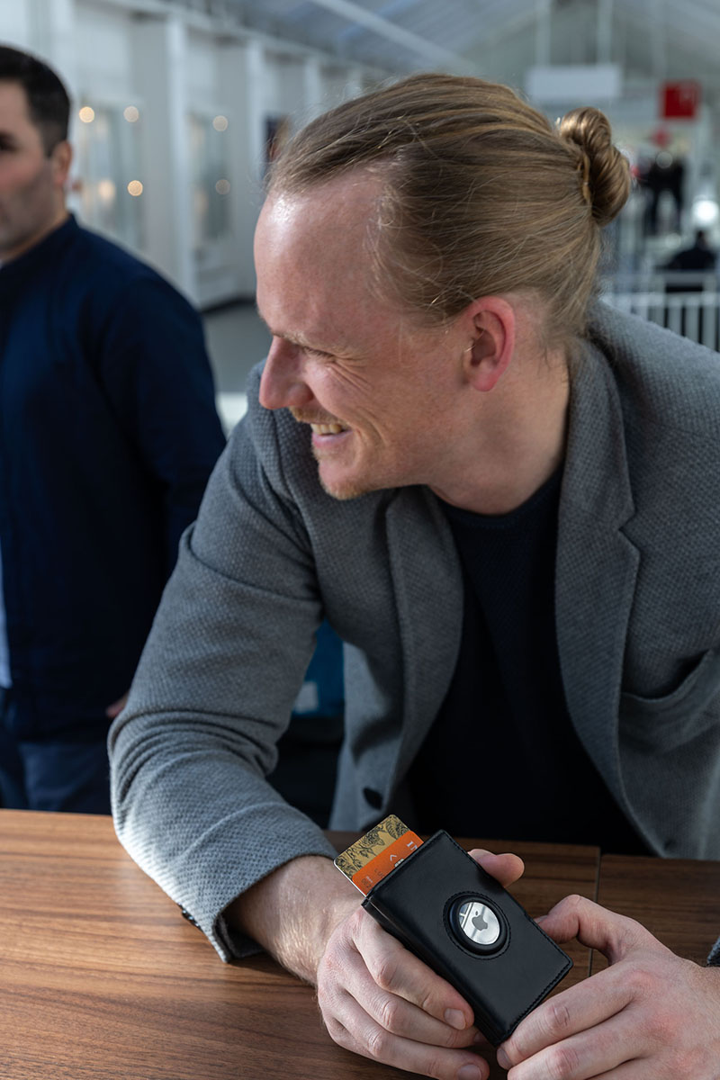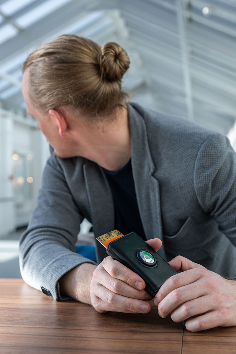 Кошелек и чехол для кредитной карты, 1 отделение для банкнот, 2 отделения для карточек с защитой от мошенничества (для чипов RFID), цельносварной футляр, искусственная кожа, черный / красный