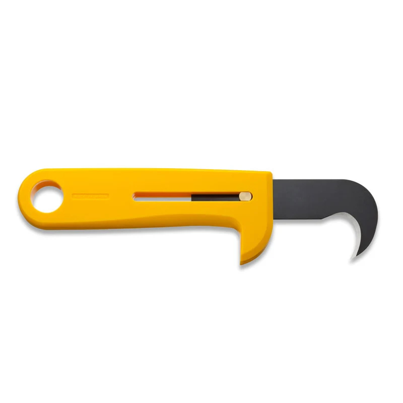 OLFA HOK-1 идеально подходит для резки упаковочных пленок, веревок и лент. Нож обладает высокой режущей способностью, но при этом не повреждает поверхность или внутреннее содержимое упаковки за счет уникальной формы. Специальный упор на корпусе для защиты руки от соскальзывания и возможность полностью убирать лезвие в ручку обеспечивают безопасность во время работы и транспортировки. Лезвие выполнено из углеродистой инструментальной стали для эффективного реза и длительного срока службы. Применение: используется для вскрытия упаковочной тары, при резке упаковочных пленок, веревок и лент.