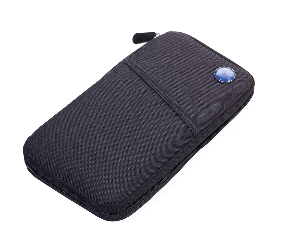 Футляр для проездных документов, мотив: AROUND THE WORLD, полиэстер, черный / серый