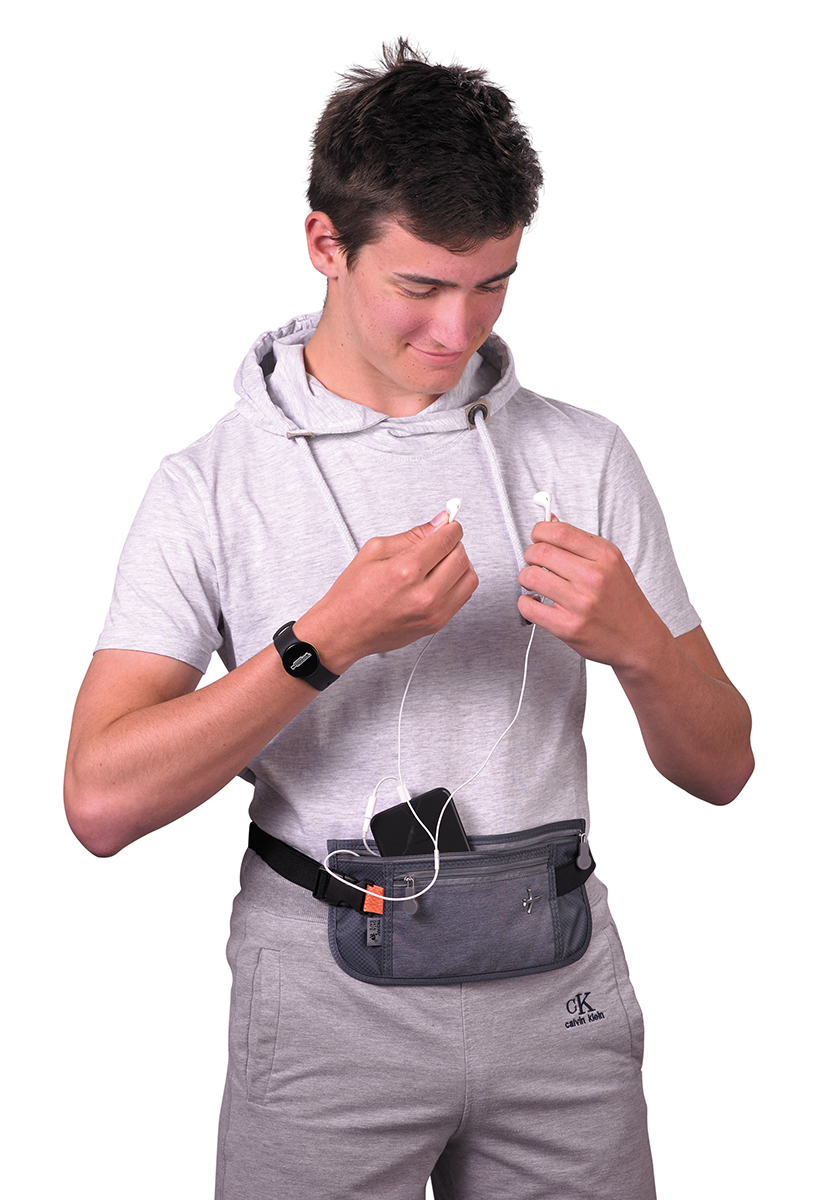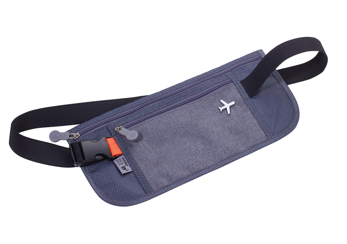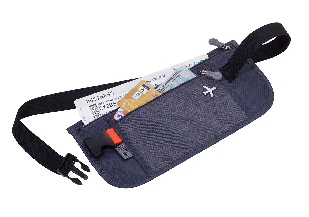 Поясная сумка с 2 отделениями на молнии, 1 отделение с защитой от мошенничества (для RFID-чипов), подходит для билетов, паспорта, удостоверения личности, водительских прав, посадочных талонов, полиэстер, серый