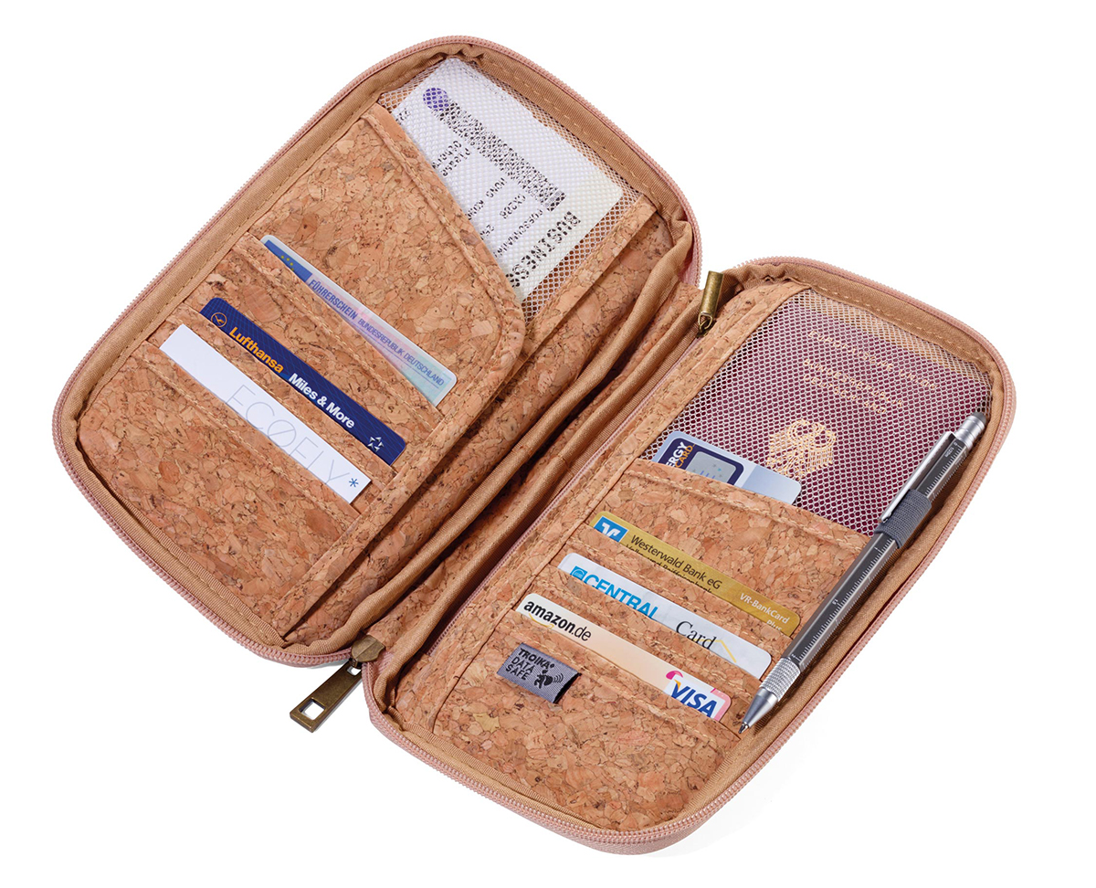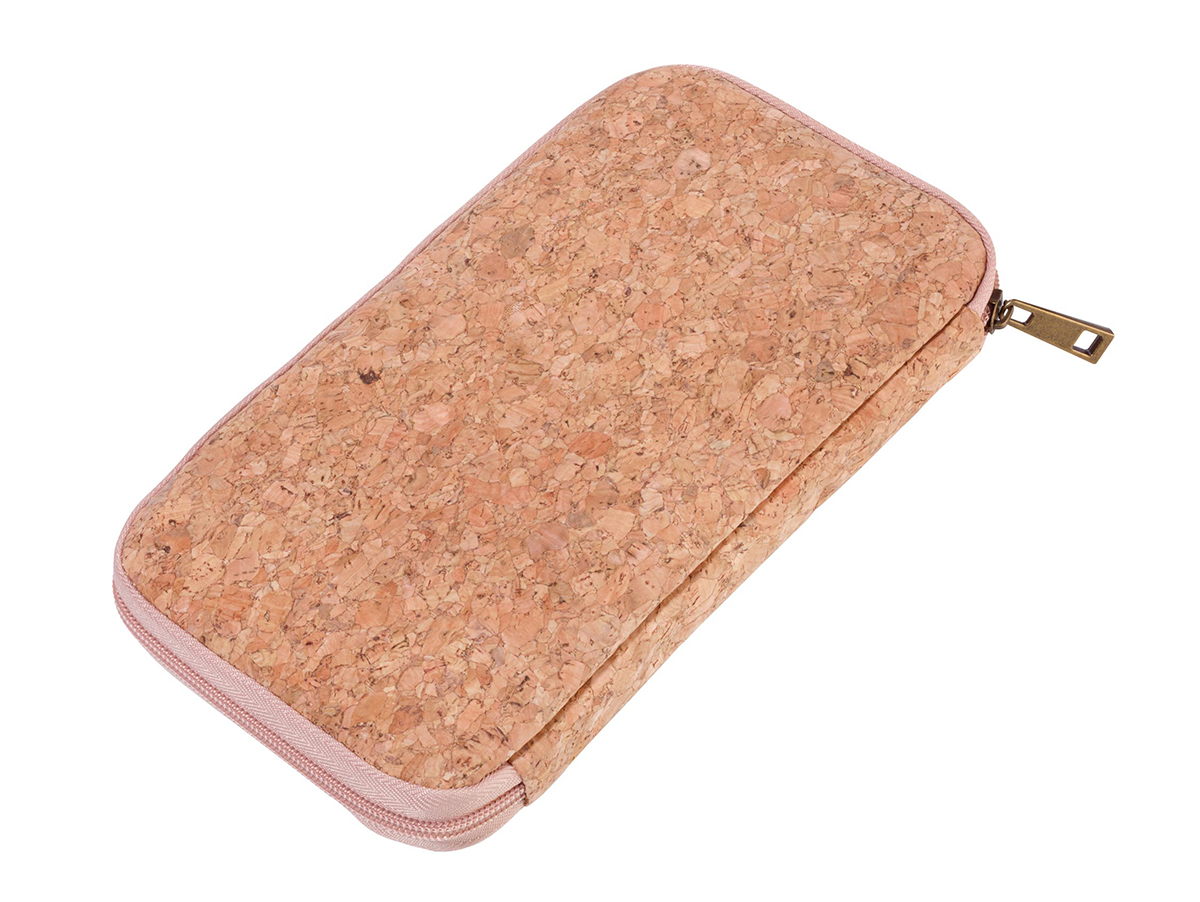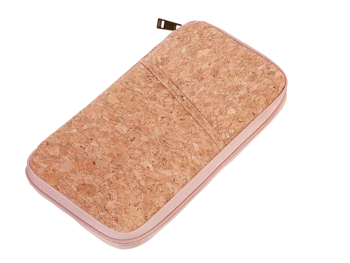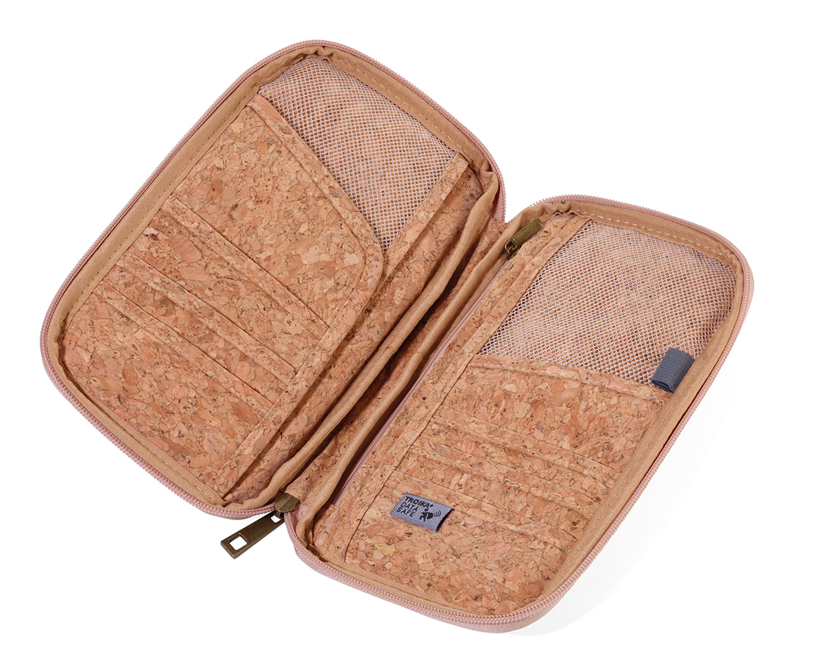 Кейс для проездных документов, с защитой от мошенничества (для чипов RFID), молния, 12 внутренних отделений, петля для ручки, пробка, полиэстер, матовый, бежевый