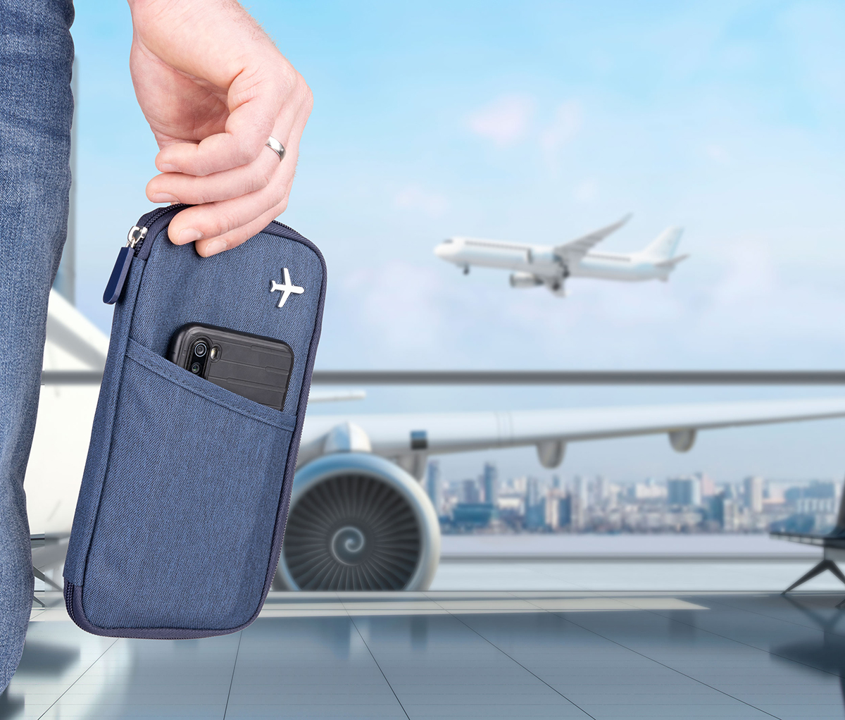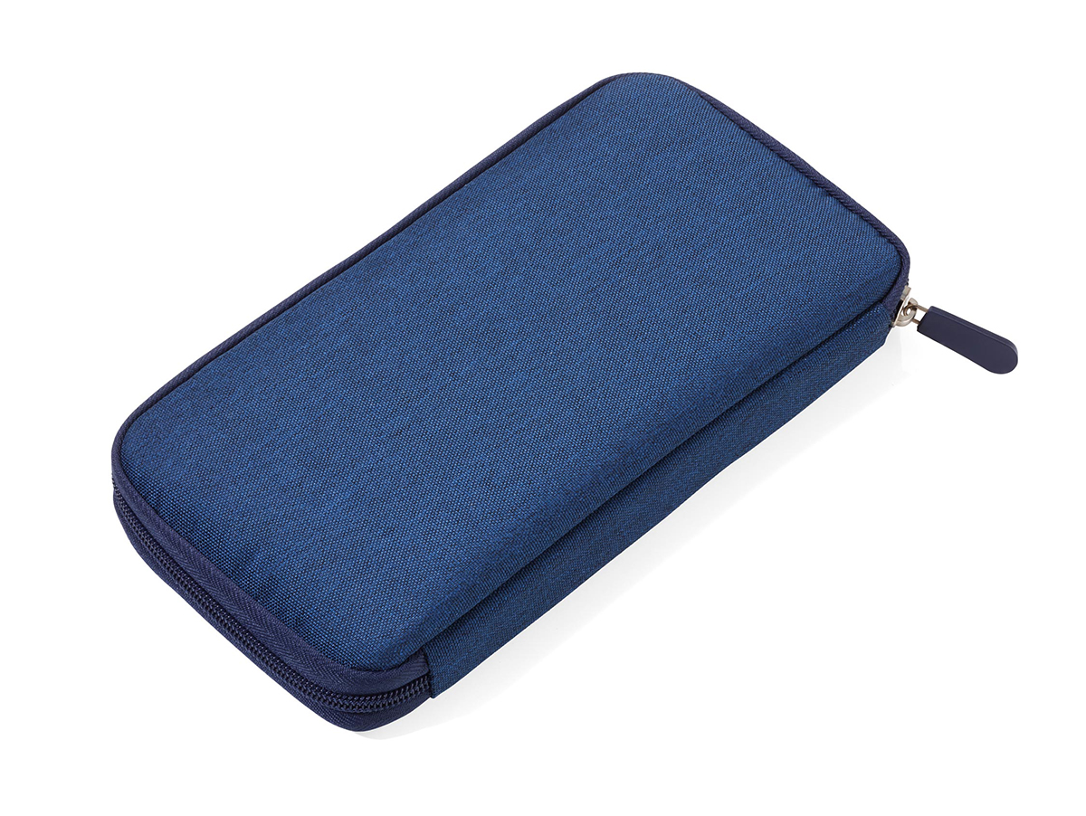 Кейс для проездных документов, с защитой от мошенничества (для чипов RFID), молния, 12 внутренних отделений, петля для ручки, полиэстер, темно-синий / оранжевый