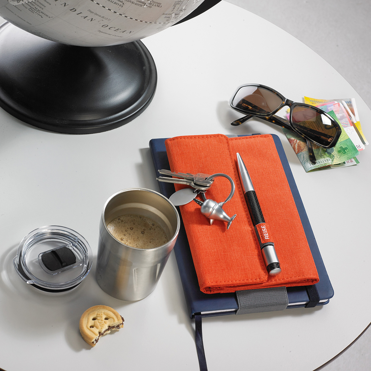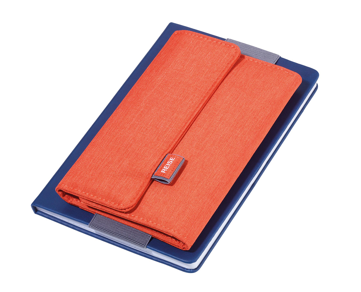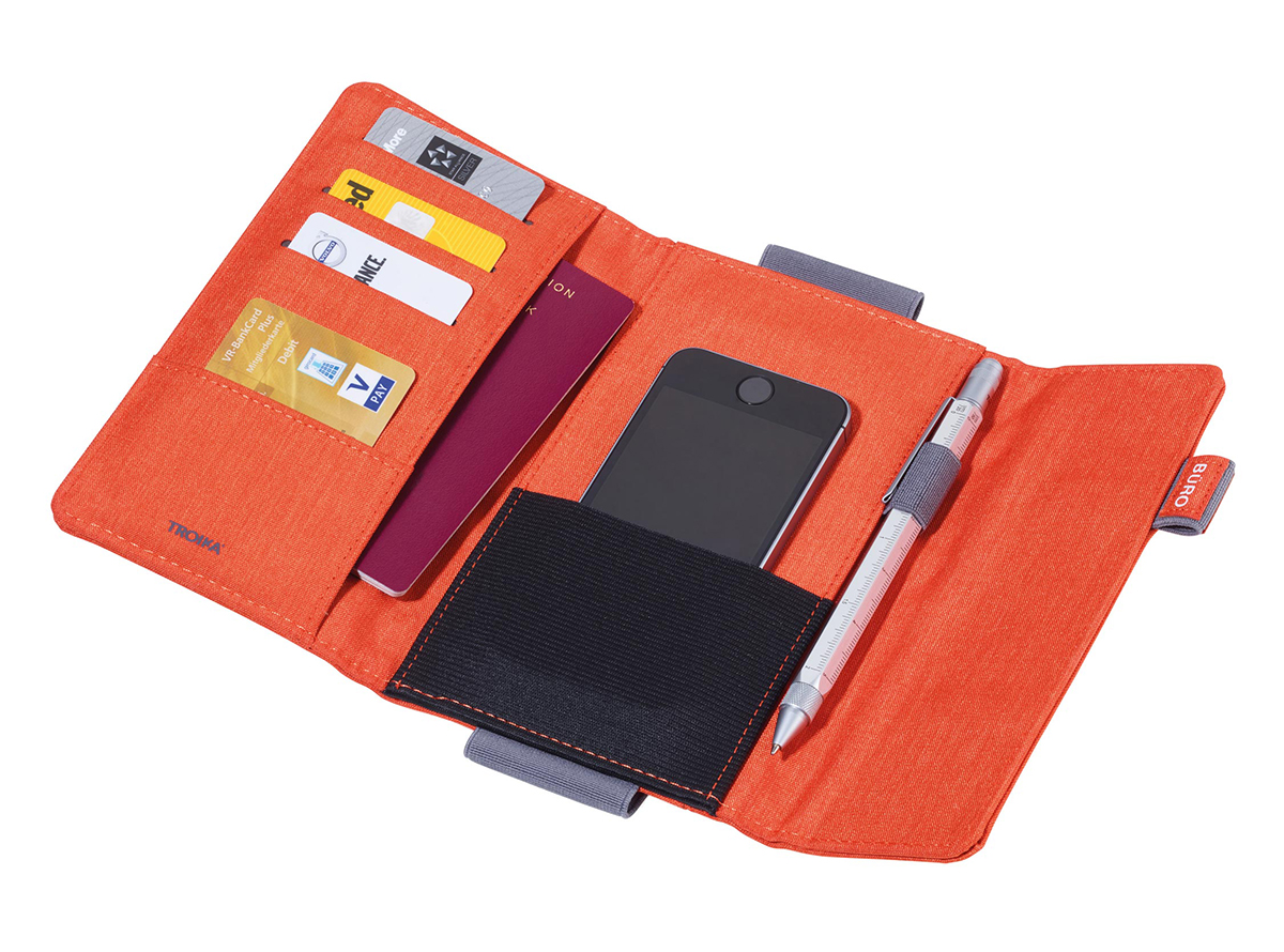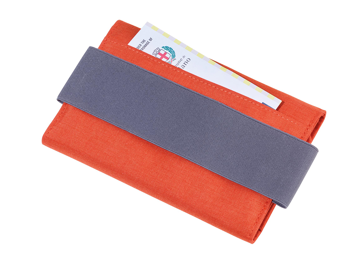 Кейс-органайзер для проездных документов с магнитной застежкой, 5 внутренних отделений для паспорта, кредитных и визитных карточек + 1 эластичное отделение для смартфонов до 5,5 '', 1 внешний карман, 2 петли для ручек, эластичная петля для прикрепления к блокноту A5 или тележка, полиэстер, серый / оранжевый