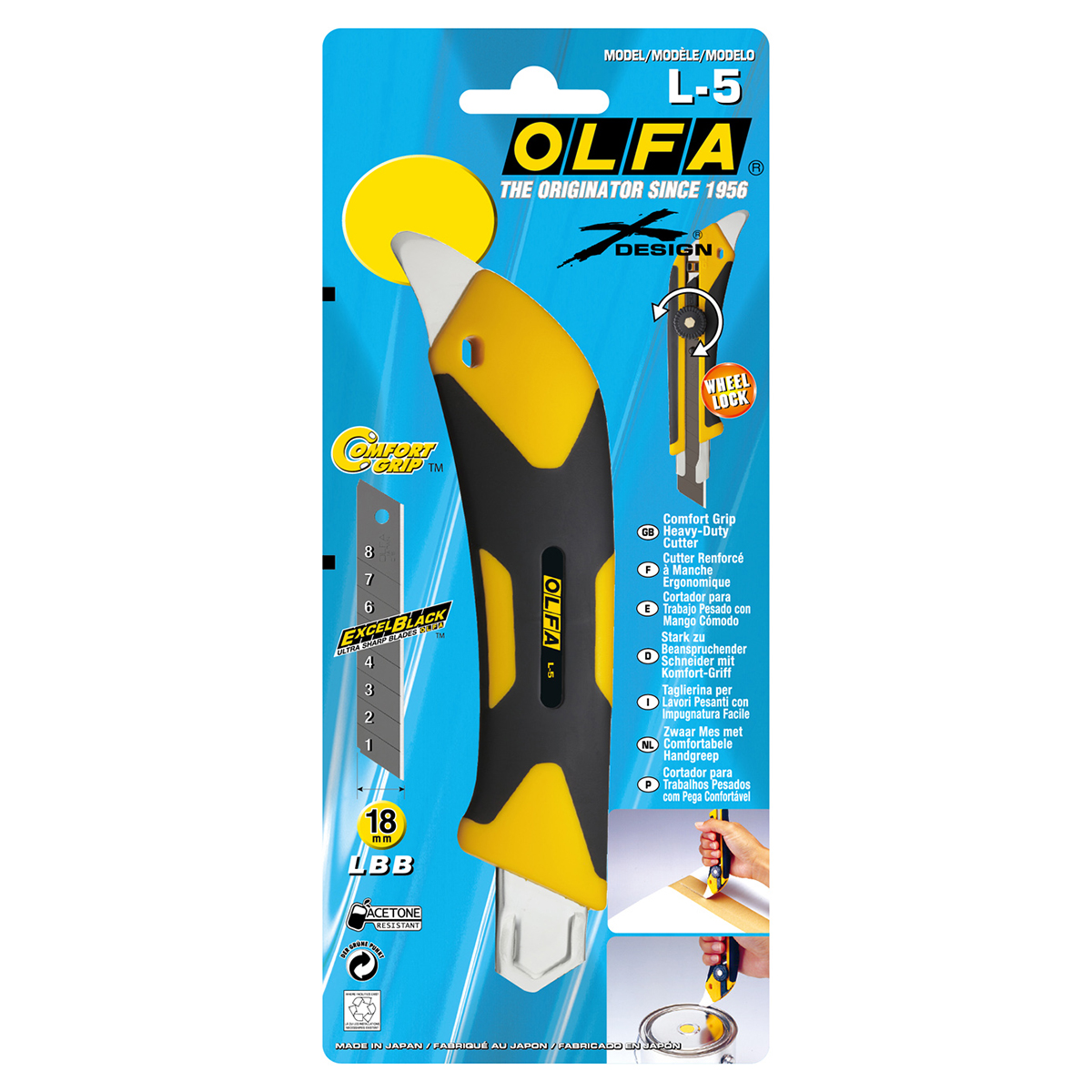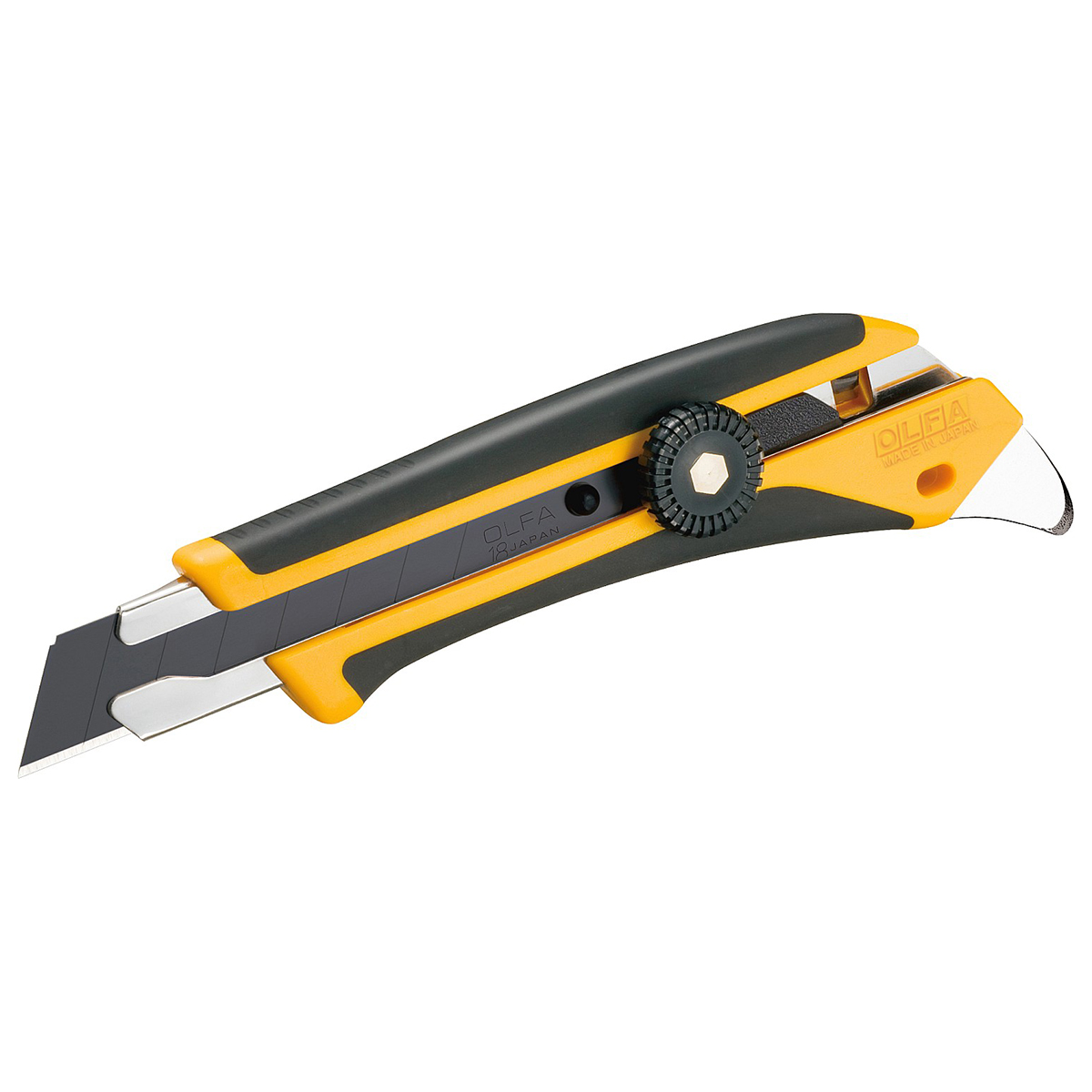 Нож сверхпрочный Olfa c многофункциональным выступом. Рукоятка Sure grip изготовлена из эластомера и полипропилена, армированного стекловолокном, для защиты от кислоты и ацетона (масла). Трещоточный фиксатор. Оснащен металлическоим выступом для универсального использования. Металлический выступ отлично подходит для различных целей, таких как упаковка, распаковка, открытие банок с краской и многое другое. Предварительно загружено сверхточное лезвие LBB Excel black. Наши черные лезвия имеют более острый угол заточки, чем наши стандартные серебряные лезвия, и обладают превосходной начальной остротой. Двухступенчатое шлифование затрудняет образование сколов на лезвии с острыми углами. Нескользящая рукоятка X-образного дизайна для превосходного захвата и долговечности. Рукоятка X-design разработана таким образом, чтобы помогать прикладывать усилие без скольжения. Полимерная часть изготовлена из полипропилена, армированного стекловолокном, для превосходной прочности. Система автоматической блокировки надежно фиксирует лезвие одним касанием. Поставляется с черным лезвием LBB шириной 18 мм, которое на 25% острее стандартных лезвий OLFA. Просто отломите один из восьми сегментов, если лезвие затупилось. Полная замена происходит быстро и без дополнительных инструментов. Используется для резки гипсокартона, ковровых покрытий, кожи, резины, фанеры и др.