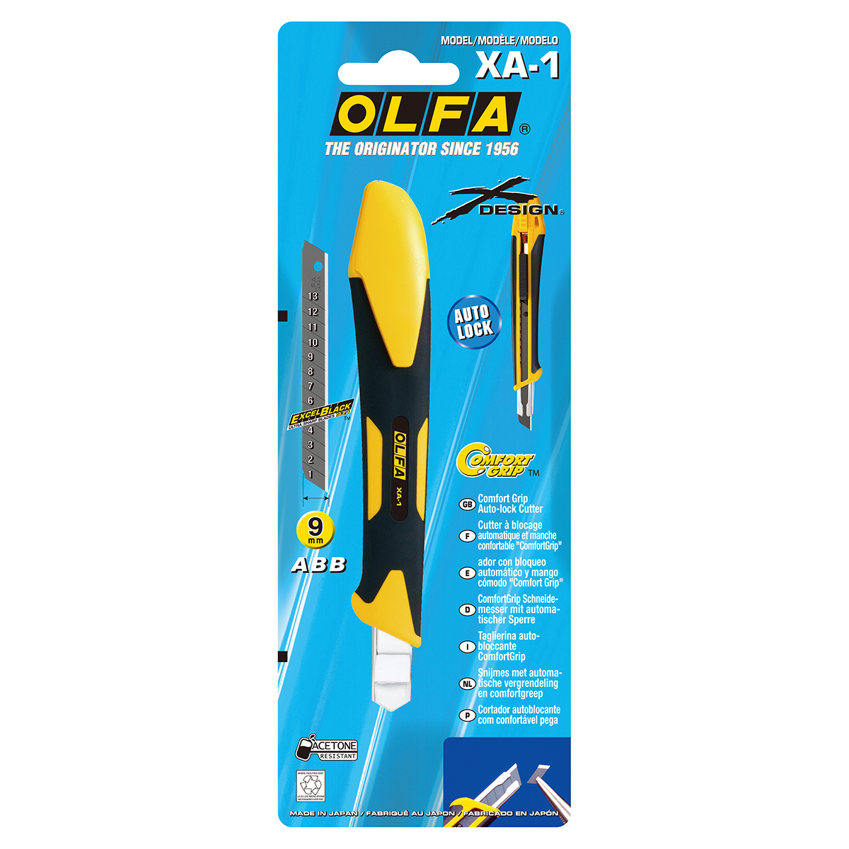 Нож универсальный компактный Olfa. Используется для срезания монтажной пены, а также для резки картона, пленки и обоев. Рукоятка XA-1 изготовлена из полипропилена, армированного стекловолокном, соединенного с эластомером, и превосходит рукоятку из АБС-пластика по своим противоацетонным, антикислотным и противоударным свойствам. Физические характеристики XA-1 делают его практичным для строительных и малярных работ. Хорошо известная и зарекомендовавшая себя модель с автоматическим замком и сверхострым черным лезвием. Рукоятка X-design разработана таким образом, чтобы помогать прикладывать усилие без скольжения. Полимерная часть изготовлена из полипропилена, армированного стекловолокном, для превосходной прочности. Лезвие Excel Black имеет более острый угол заточки, чем наше стандартное серебряное лезвие, и отличается превосходной начальной остротой. Двухступенчатое измельчение делает его устойчивым к сколам, даже несмотря на то, что он имеет острый угол. Система автоматической блокировки надежно фиксирует лезвие одним касанием. Чтобы сменить лезвие: зажмите и вытяните зажим, снимите ползунок с задней части основного блока и замените лезвие.