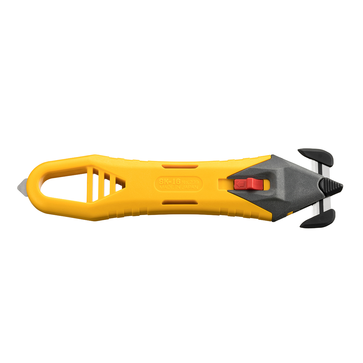 Минимальный зазор между двумя пластиковыми накладками не позволяет лезвию соприкасаться ни с вашими пальцами, ни с товаром внутри. Конструкция скрытого лезвия обеспечивает постоянное обнажение лезвия при выполнении повторяющихся, требовательных работ по резке. Высвобождение лезвия может быть легко активировано с любой стороны рукояти. SKB-16 обеспечивает такое же воздействие на лезвие, как и при загрузке, повышая уровень безопасности. Эффективность работы повышается благодаря эргономичной удобной рукоятке SK-16. Крепление лезвия, соединительный сегмент и рукоятка изготовлены из армированных стекловолокном смол для профессионального использования. Усовершенствованный металлический наконечник для улучшения разрезания ленты. Отверстие для страховочного шнурка для предотвращения несчастных случаев (ремешок в комплект поставки не входит). SK-16 устойчив к растворителям и может быть очищен ацетоном или другими химикатами для удаления краски или других жидкостей на основе растворителей.