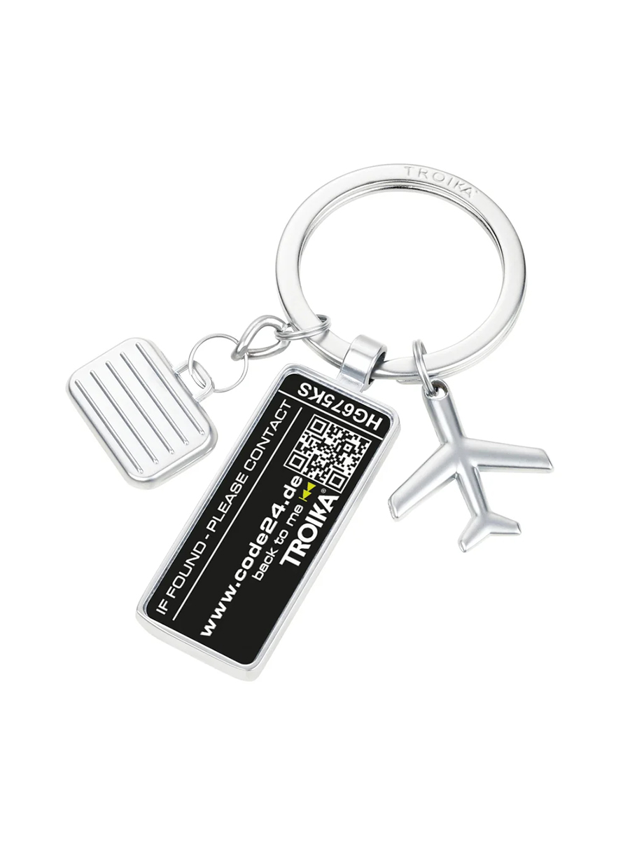 Lost & Found. Потерялся? нет проблем! Брелок, который снова обретает своего владельца. Этот стильный кулон – это больше, чем просто привлекательный аксессуар - он гарантирует, что ключи найдут дорогу домой. Встроенный QR-код работает как цифровой спасательный круг: просто отсканируйте, и искатель сможет мгновенно связаться с владельцем без риска. С очаровательными подвесками самолета и чемодана это идеальный компаньон для частых путешественников, которые путешествуют стильно, всегда сохраняя при этом немного безопасности в своем багаже. Найдите свои ключи в кратчайшие сроки – встроенный QR-код позволяет поисковику немедленно связаться с вами. Этот брелок с очаровательными подвесками, такими как самолет и чемодан, станет идеальным компаньоном для стильных частых путешественников. В стоимость входит 2 года бесплатной услуги утерянного и найденного сервиса после простой регистрации - для дополнительной безопасности в дороге. Высококачественное литье под давлением из цинка с матовым серебром обеспечивает долговечность и придает брелоку элегантный вид.