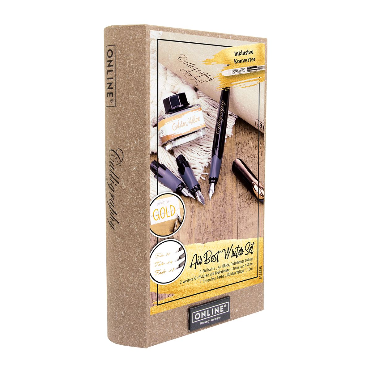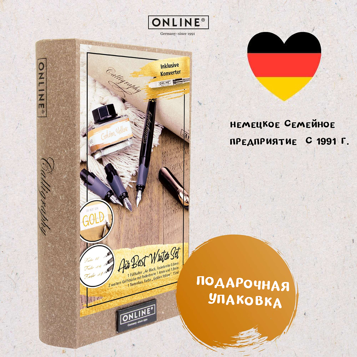 Подарочный набор AIR Best Writer от ONLINE, состоящий из ручки для каллиграфии и двух дополнительных ручек, дополненных высококачественными иридиевыми каллиграфическими перьями размером 0,8 мм, 1,4 мм и 1,8 мм для творческого письма, гарантирует плавный стиль письма. .