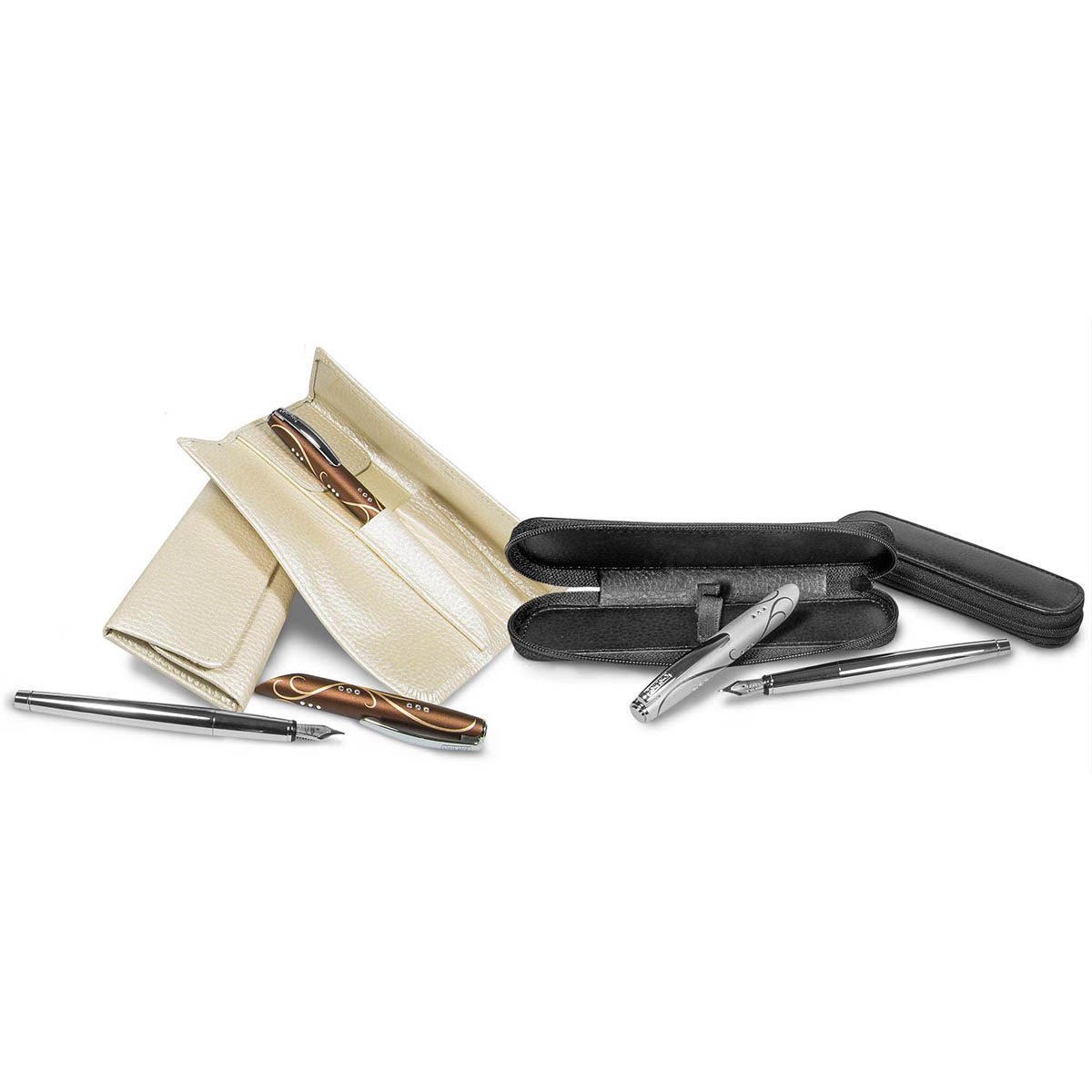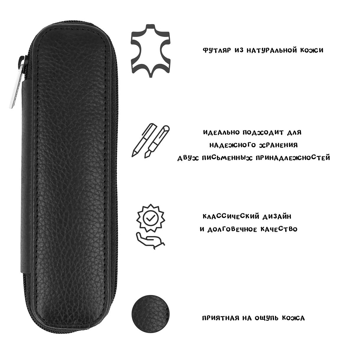 Качественный чехол из натуральной кожи ONLINE на молнии отличается красивым дизайном и отличной защитой. Это элегантный аксессуар, который превращает любой пишущий инструмент в прекрасный подарок на разные случаи жизни. Пенал сочетает в себе инновационный дизайн и изысканное качество. Предназначен для двух длинных ручек.