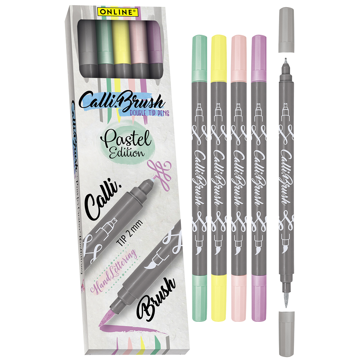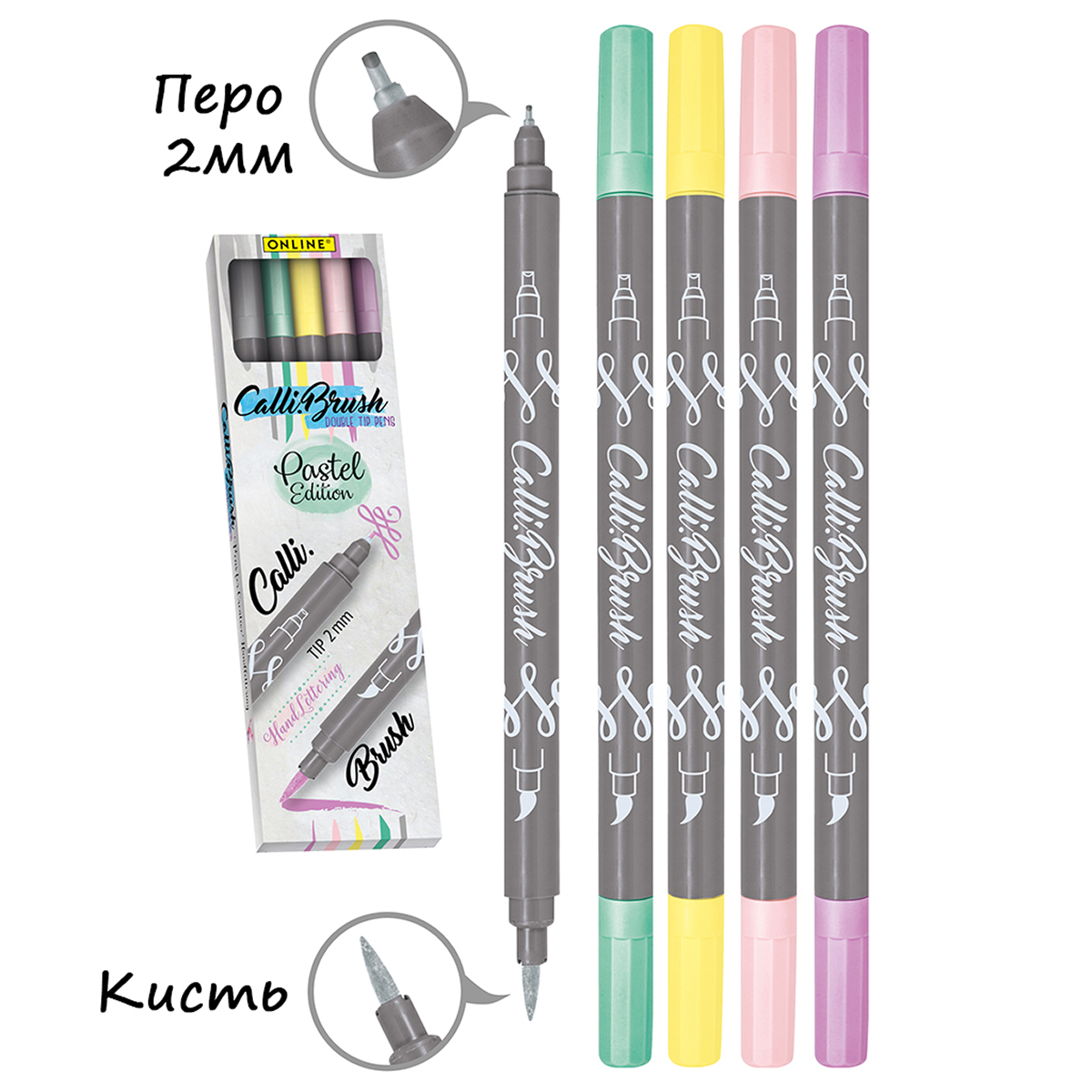 Набор для скетчинга и каллиграфии от Online состоит из 5 пудровых оттенков: мятный, лаванда, пудра, ваниль, серый