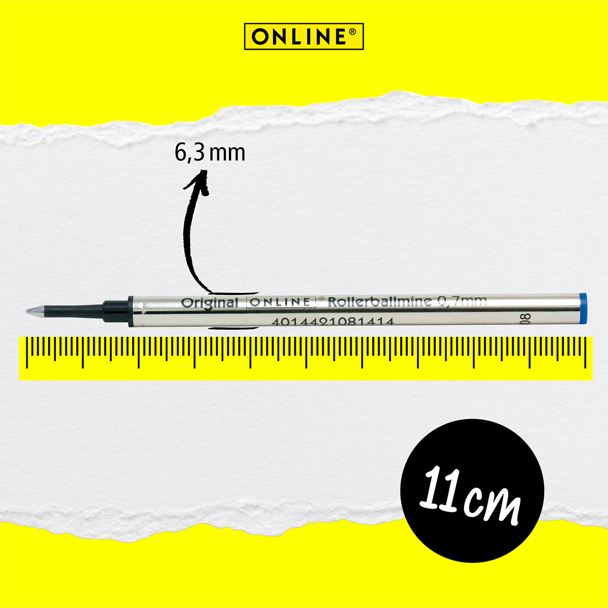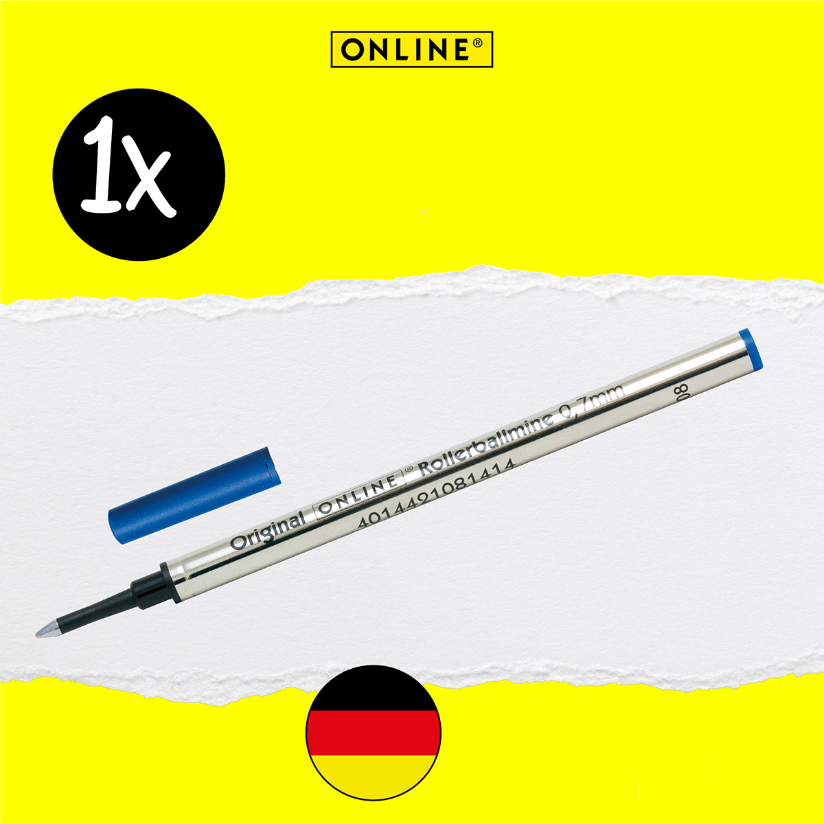 Стержень для роллера ONLINE, высокое качество, металл, шарик из нержавеющей стали 0,7 мм, идеально подходит для ручек без колпачка, сделано в Германии, ISO 14145-2;