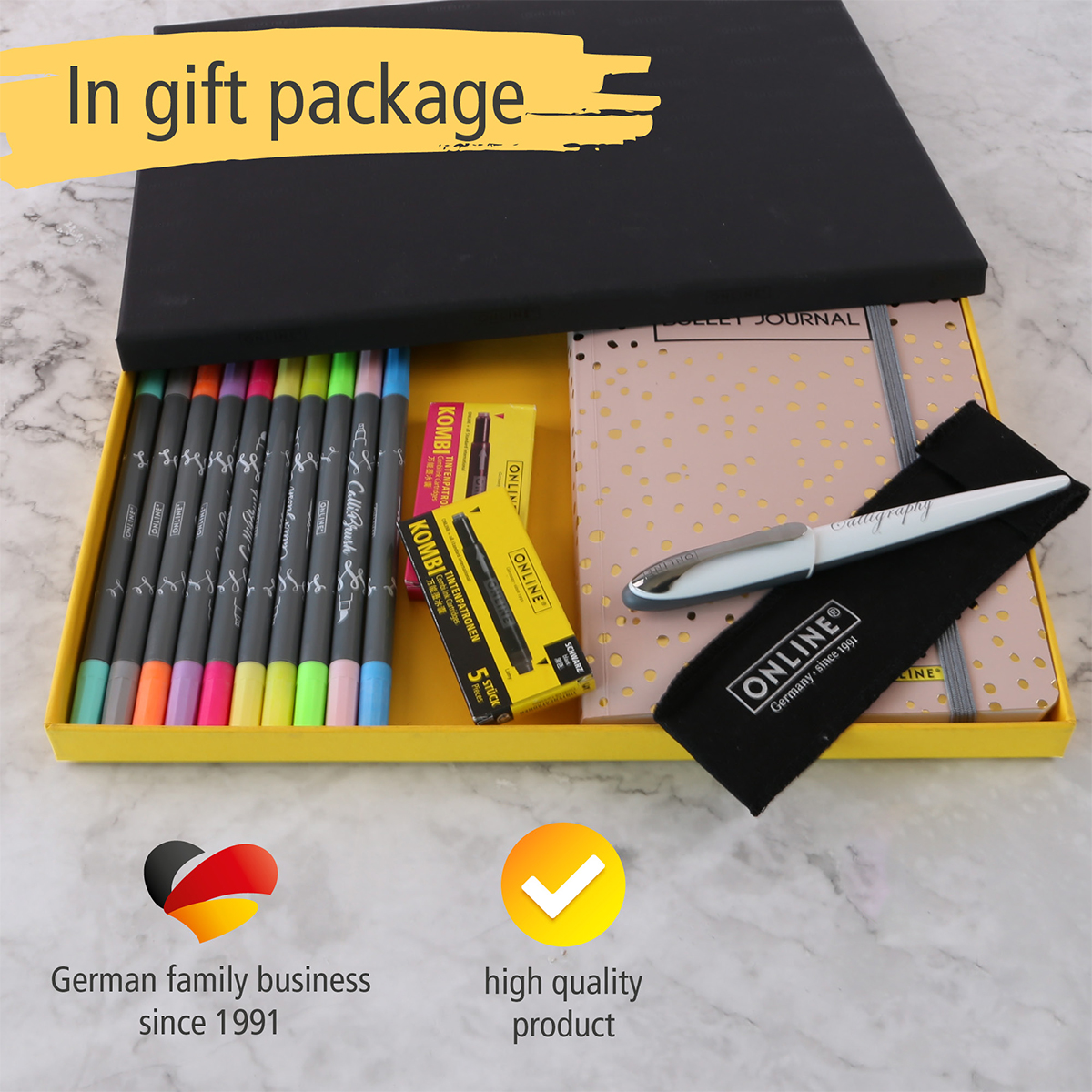 Для тех, кто хотел бы попробовать свои силы в рукописном и каллиграфическом искусстве, идеально подойдет универсальный набор для каллиграфии от ONLINE. Подарите своим близким или себе этот замечательный набор для надписей!