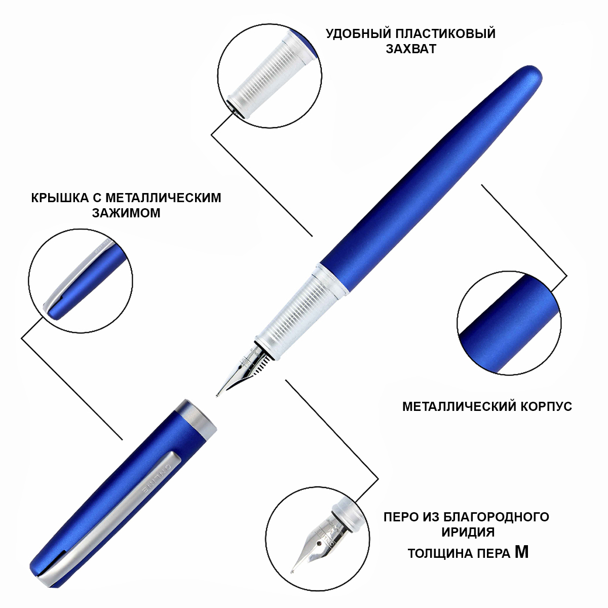—Ручка перьевая "Eleganza Classic" с синим картриджем, размер пера M, 0.5 мм, цвет корпуса синий. Арт 34639