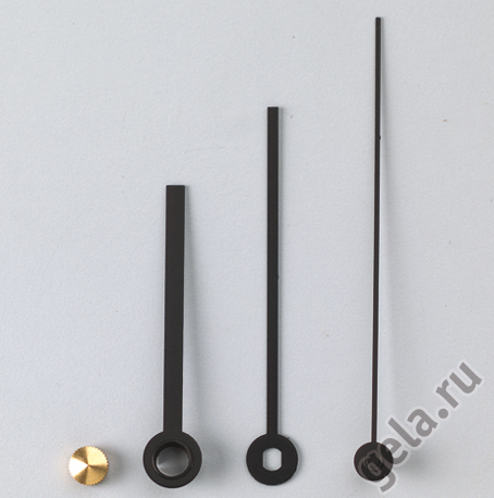 Минималистичный стрелки-палочки. Циферблат часов со стрелками можно применить, как у классических, изящных моделей. Имеется секундная стрелка. Длина 43/55/70 мм. Цвет черный металлик.