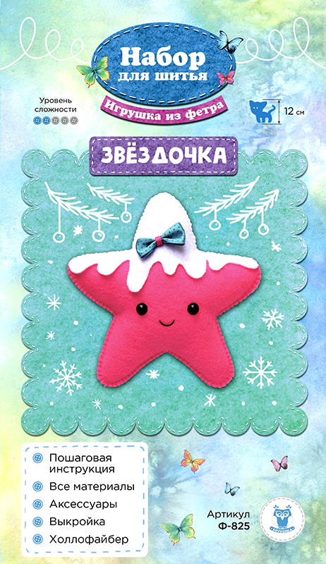 Под торговой маркой "SOVUSHKА" предоставлены наборы для изготовления уникальных интерьерных игрушек, которые станут украшением для любого дома, а процесс создания такой игрушки увлечет любою рукодельницу, как опытную, так и начинающую и позволит создать настоящий шедевр. В состав набора входит: фетр цвет розовый, белый; глазки; шнур; наполнитель; инструкция.