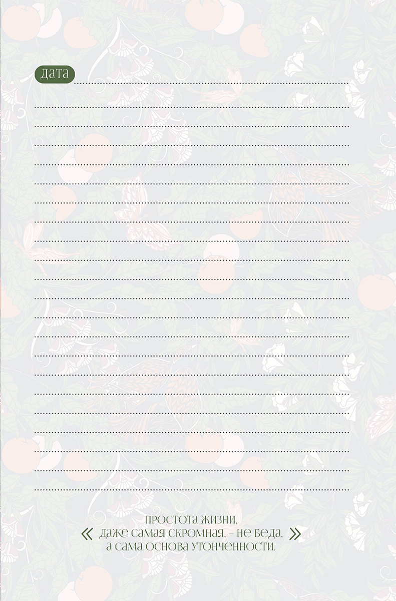 Ежедневник для тех, кто стремится к гармонии и эстетике во всём! Завораживающие орнаменты, созданные по мотивам работ легендарного британского художника Уильяма Морриса, украшают каждый разворот этого издания. Уильям Моррис – ярчайший представитель культурного направления Arts & Crafts и подлинная икона стиля для нескольких поколений дизайнеров. Вместе с яркими иллюстрациями в ежедневнике собраны мудрые высказывания самого мастера, содержащие тезисы о жизни и искусстве, которые страстно защищал сам Моррис. Удобный формат, плотные цветные страницы, классическая линовка в линию, ленточка-закладка и возможность начать вести записи в любой момент – всё это превратит использование нашего ежедневника в истинное удовольствие!