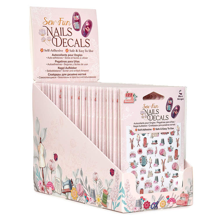 Слайдеры для дизайна ногтей. Самоклеющиеся. Безопасны и просты в использовании. Соответствует стандартам безопасности EN-71, ASTM, FDA. Каждая упаковка содержит 122 наклейки в швейных тематических дизайнах. На упаковке указана инструкция по использованию.Размеры изделия: W9,5 x D0,2 x H14 см. Размеры дисплея: W10 x D20 x H14 см. Вес брутто товара: 340 г.