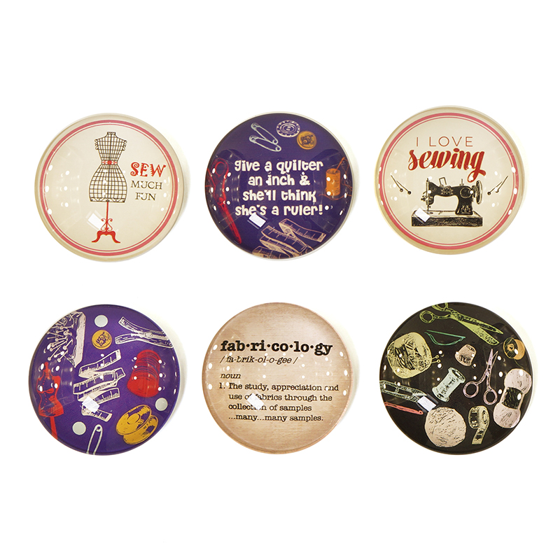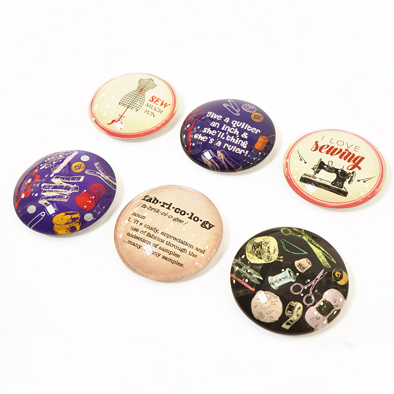 Магниты диаметром 45 мм. 6 различных дизайнов. Сильный магнит, держит фото, либо несколько листов бумаги. Для дома, офиса и школы. Для людей вдохновленных шитьём.