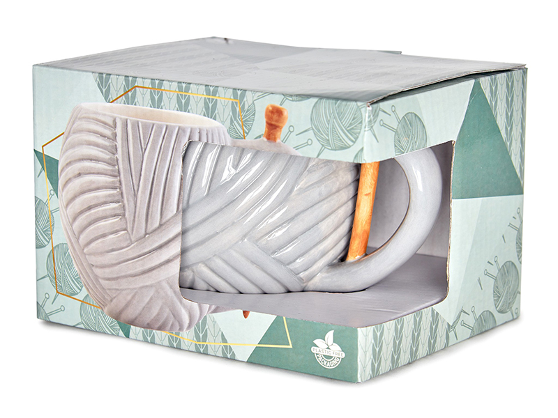 Кружка в виде клубка с узором и ручкой, 500 мл. Упаковано в оконную цветную бумажную коробку. Микроволновая печь и посудомоечная машина безопасны. Хорошо подходит для горячих и холодных напитков. Цвет: серый. Размеры изделия (кружка): W14. 5 x D10 x H9. 7 см. Размеры изделия (в упаковке): W16. 5 x D12. 5 x H11 см.