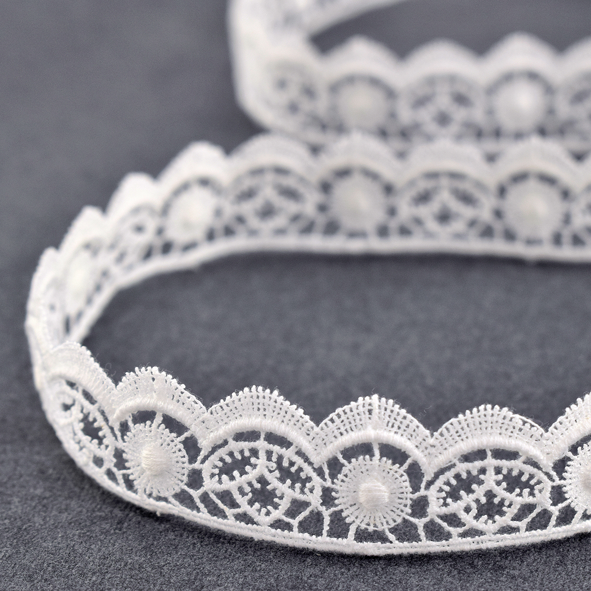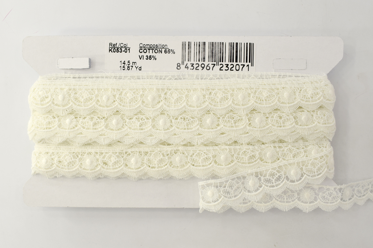 Изысканно-нежное испанское кружево, созданное современными дизайнерами по традиционным старинным рисункам и в традициях кружевоплетения. Изготовлено машинным способом, при этом имеет вид тонкой ручной раб