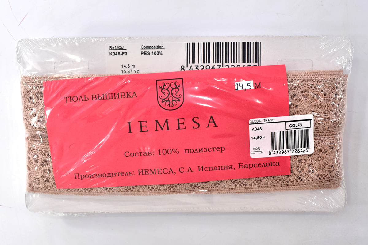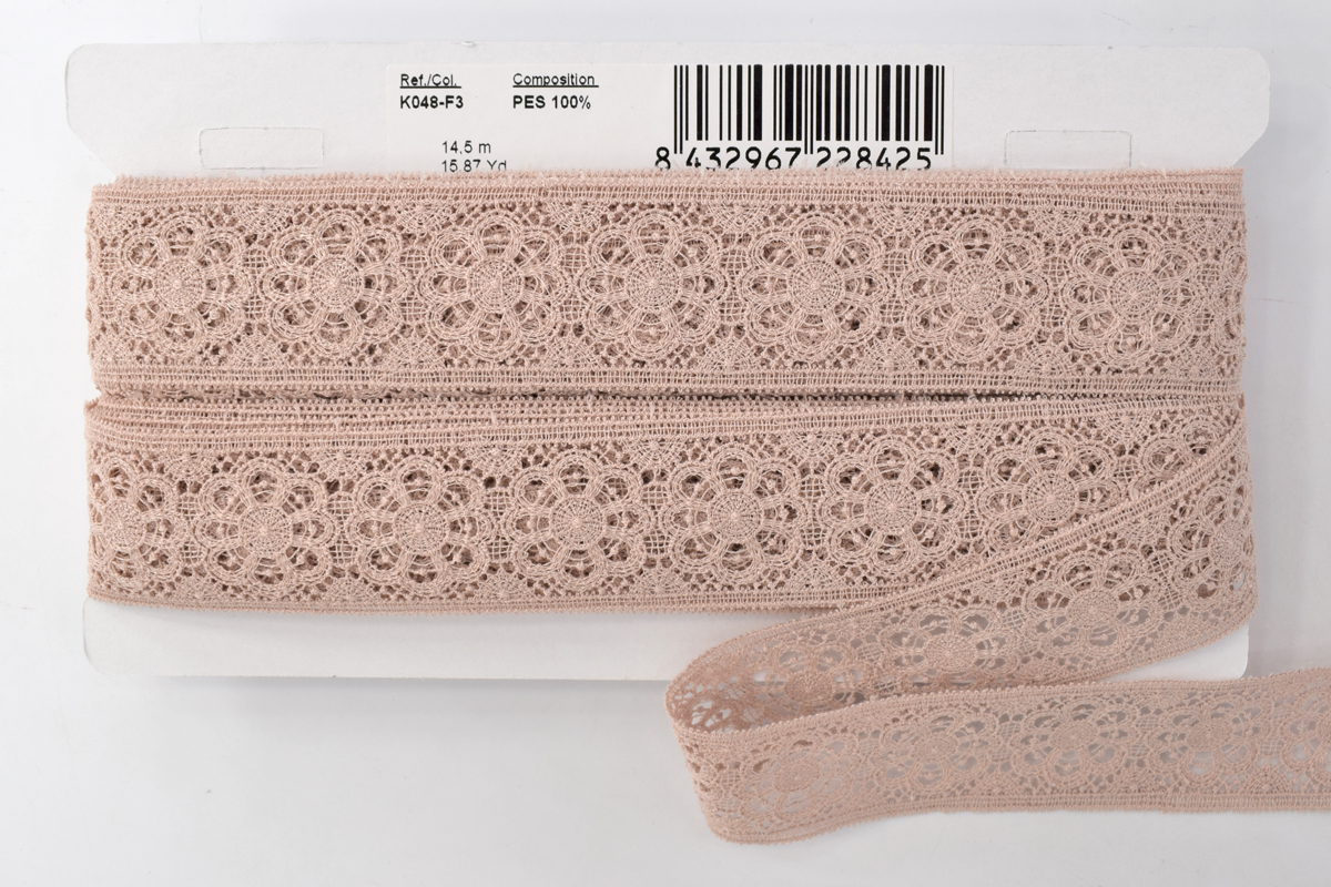 Изысканно-нежное испанское кружево, созданное современными дизайнерами по традиционным старинным рисункам и в традициях кружевоплетения. Изготовлено машинным способом, при этом имеет вид тонкой ручной раб