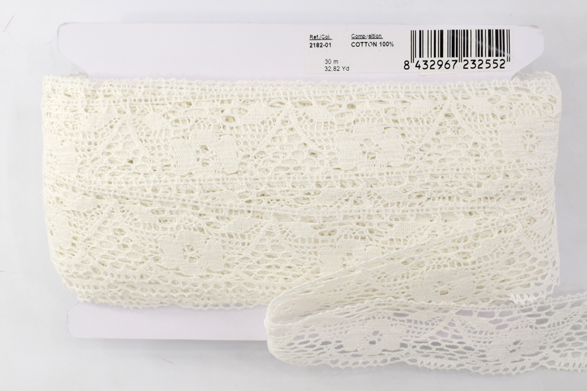 Изысканно-нежное испанское кружево, созданное современными дизайнерами по традиционным старинным рисункам и в традициях кружевоплетения. Изготовлено машинным способом, при этом имеет вид тонкой ручной работы. Использованы мерсеризованные хлопковые нити №40 для "тонкого" кружева и сочетание нитей №40 с толщинами №30, №24, №18 для придания фактурности. Кружево выпускается как в традиционных оттенках: снежно-белый, шампань, экрю, так и в соответствии с современным модным тенденциям в ярких и пастельных тонах. Сфера применения: декорирование интерьерного текстиля (подушки, покрывала, скатерти, дорожки, занавеси, абажуры), одежды в народном и винтажном стиле, рукодельных проектах по пошиву кукол, скрапбукингу. Производитель рекомендует деликатную стирку при 30 градусах, сушить в расправленном виде, гладить с изнанки при 2-ом температурном режиме на подложке. Кружево плетеное нельзя стирать в стиральной машине при 60 и 90 градусах на режиме "хлопок".