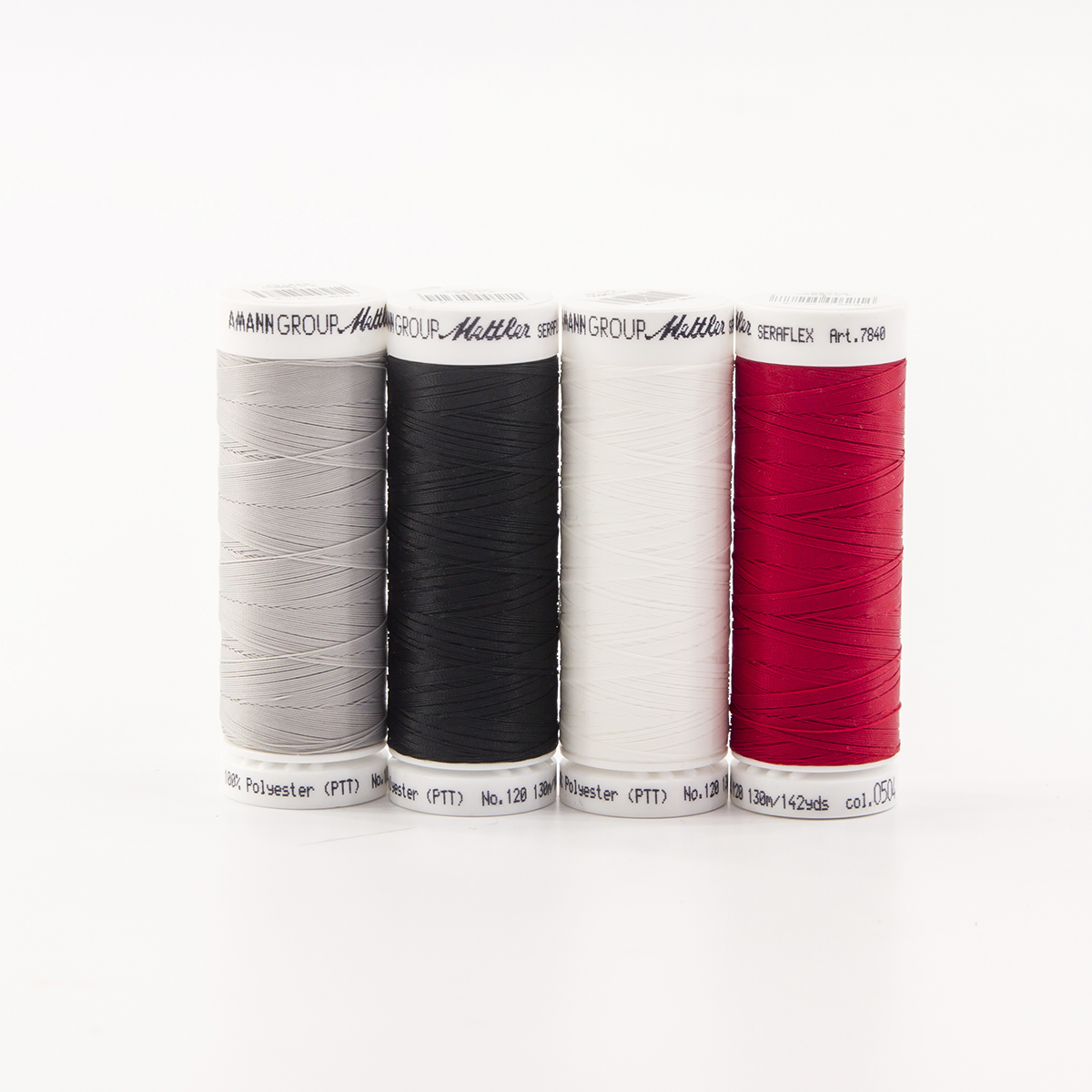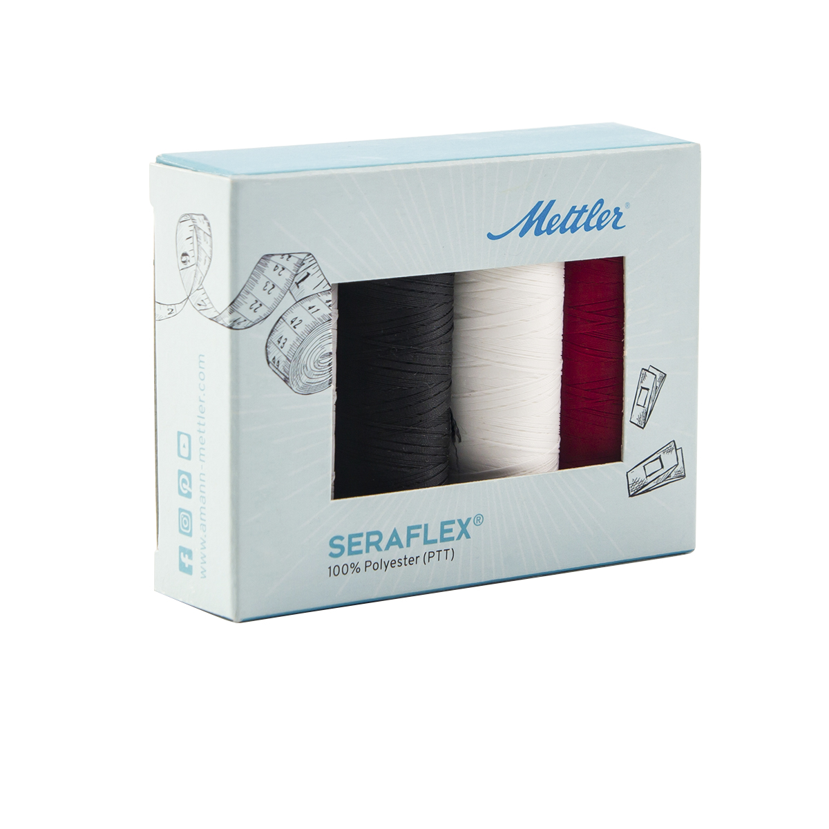 Набор с нитками Seraflex в подарочной упаковке, 4 катушки. Нити Seraflex - идеально подходит для высокоупругих швов. Благодаря новаторскому сырью PTT - растяжение достигает примерно 65%, делая все швы высокоэластичными. SERAFLEX делает прямолинейный уклон чрезвычайно растяжимым, в лучшем случае он может даже удвоить упругость шва по сравнению с обычными швами. Благодаря своим чрезвычайно упругим свойствам SERAFLEX используется в основном для одежды, в том числе в качестве швов для женской верхней одежды, для мужской одежды, для спортивной одежды. При использовании: Катушку нижней нити также следует обмотать с минимальным натяжением нити, чтобы избежать предварительного расширения. Набор SFX4-KIT содержит 4 катушки по 130 м прекрасных цветов.