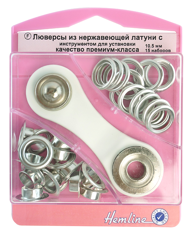 Люверсы металлические с устройством для установки в комплекте.