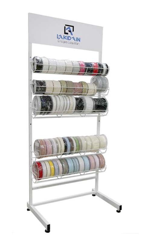Стенд напольный предназначен для выгодного представления кружева LAKIDAIN в розничном магазине, товар расположен на уровне глаз.