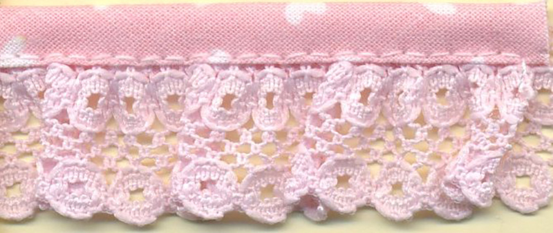 Полиамидное кружево в виде рюша в окантовке из х/б косой бейки. Сфера применения - детская одежда, аксессуары для детской, домашняя одежда и предметы текстильного интерьера. Стирать при температуре не выше 60 градусов, гладить при 2 температурном режиме. Рекомендуем использовать косую бейку из единой коллекции.