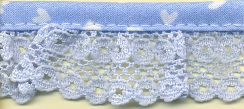 Полиамидное кружево в виде рюша в окантовке из х/б косой бейки. Сфера применения - детская одежда, аксессуары для детской, домашняя одежда и предметы текстильного интерьера. Стирать при температуре не выше 60 градусов, гладить при 2 температурном режиме. Рекомендуем использовать косую бейку из единой коллекции.