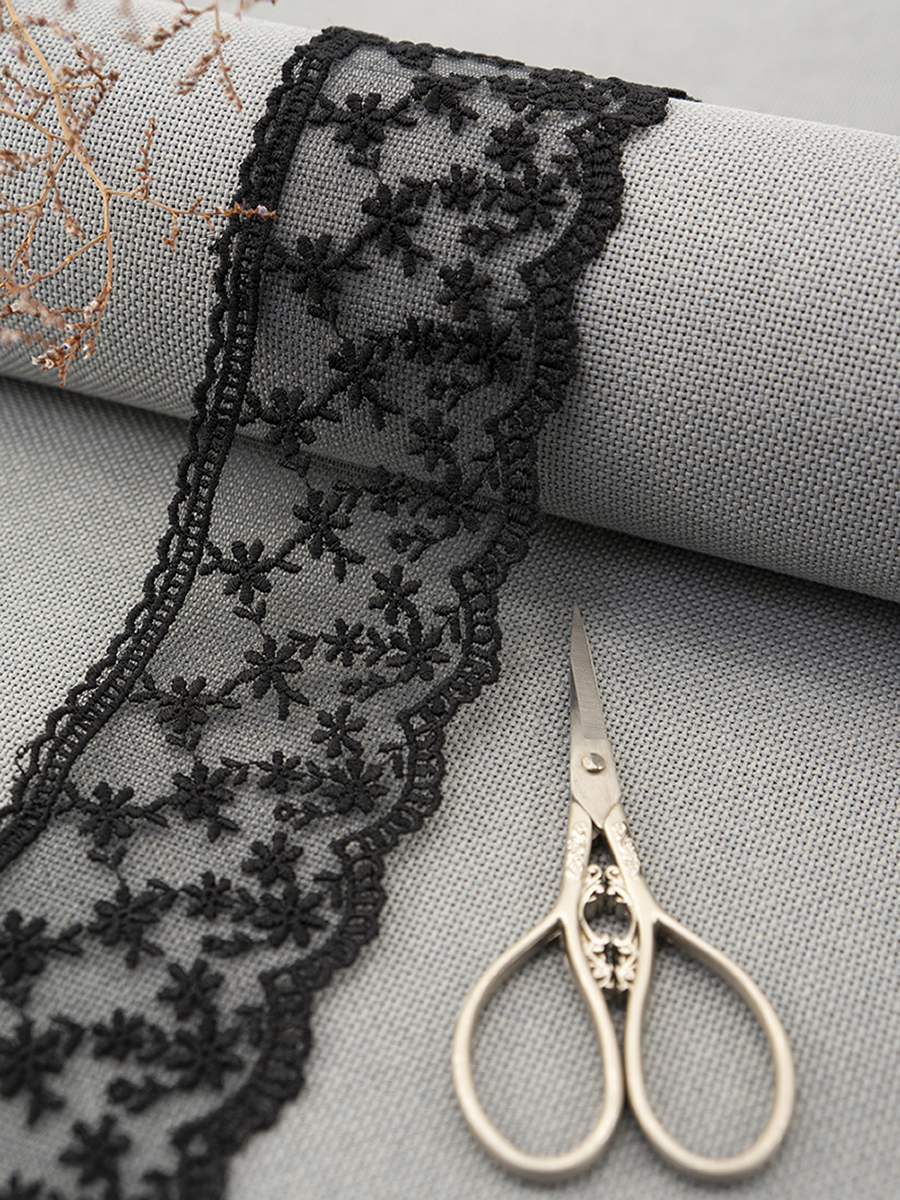 Вышивка выполнена матовыми полиэстеровыми нитями №110. Тюль-основа из 100% полиэстера белого цвета имеет запас на растяжимость, не дает стягивания швов, края не осыпаются. Применяется для отделки свадебных и нарядных женских платьев. Также применяется для отделки женских платьев, юбок и жакетов из легких и средней плотности тканей, например сукна и габардина; великолепно подходит для отделки женского белья и одежды из трикотажа; изысканно смотрится как отделка вязаных изделий. Кружево на тюле мягкое, удобно в носке и легкое в уходе, не мнется. Стирать в режиме деликатной стирки, сушить в расправленном виде, гладить с изнаночной стороны в 1 или 2 температурном режиме.