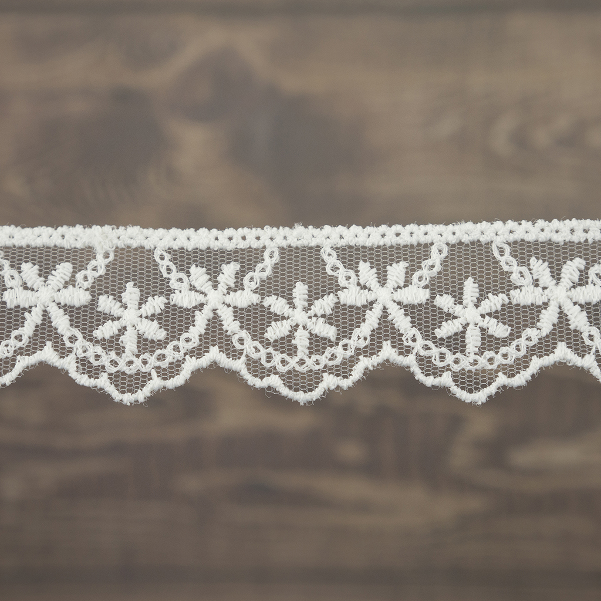Вышивка выполнена матовыми полиэстеровыми нитями №110. Тюль-основа из 100% полиэстера белого цвета имеет запас на растяжимость, не дает стягивания швов, края не осыпаются. Применяется для отделки свадебных и нарядных женских платьев. Также применяется для отделки женских платьев, юбок и жакетов из легких и средней плотности тканей, например сукна и габардина; великолепно подходит для отделки женского белья и одежды из трикотажа; изысканно смотрится как отделка вязаных изделий. Кружево на тюле мягкое, удобно в носке и легкое в уходе, не мнется. Стирать в режиме деликатной стирки, сушить в расправленном виде, гладить с изнаночной стороны в 1 или 2 температурном режиме.