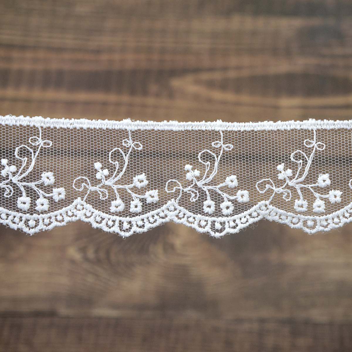 Вышивка выполнена матовыми полиэстеровыми нитями №110. Тюль-основа из 100% полиэстера белого цвета имеет запас на растяжимость, не дает стягивания швов, края не осыпаются. Применяется для отделки свадебных и нарядных женских платьев. Также применяется для отделки женских платьев, юбок и жакетов из легких и средней плотности тканей, например сукна и габардина; великолепно подходит для отделки женского белья и одежды из трикотажа; изысканно смотрится как отделка вязаных изделий. Кружево на тюле мягкое, удобно в носке и легкое в уходе, не мнется. Стирать в режиме деликатной стирки, сушить в расправленном виде, гладить с изнаночной стороны в 1 или 2 температурном режиме.