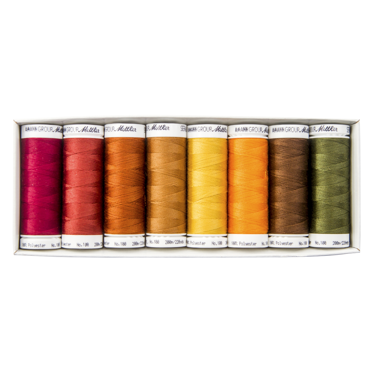 В набор входят 8 катушек нитей SERALON №100, намотка 200 м. Нити предназначены для выполнения стачивающих, отделочных и декоративных строчек на швейной машине и для стежки. Окрас нитей устойчивый.