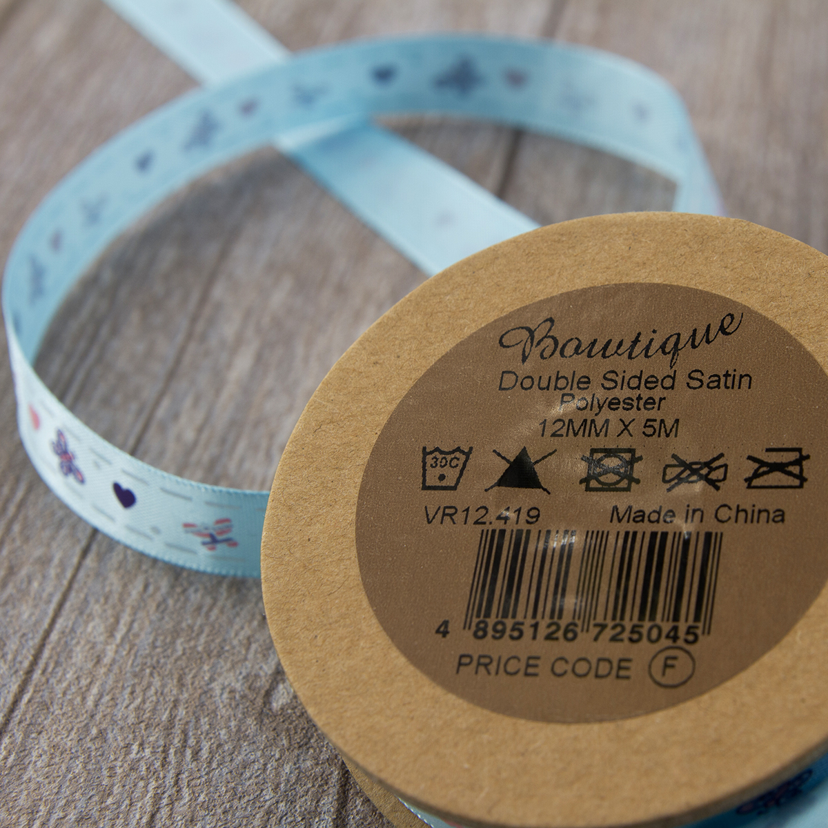 Лента репсовая с рисунком на картонной катушке для шитья, хобби, упаковки.