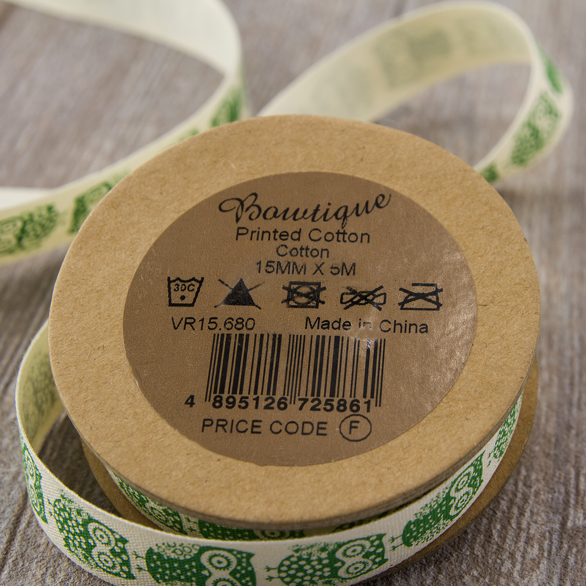 Лента хлопковая с рисунком на картонной катушке для шитья, хобби, упаковки.