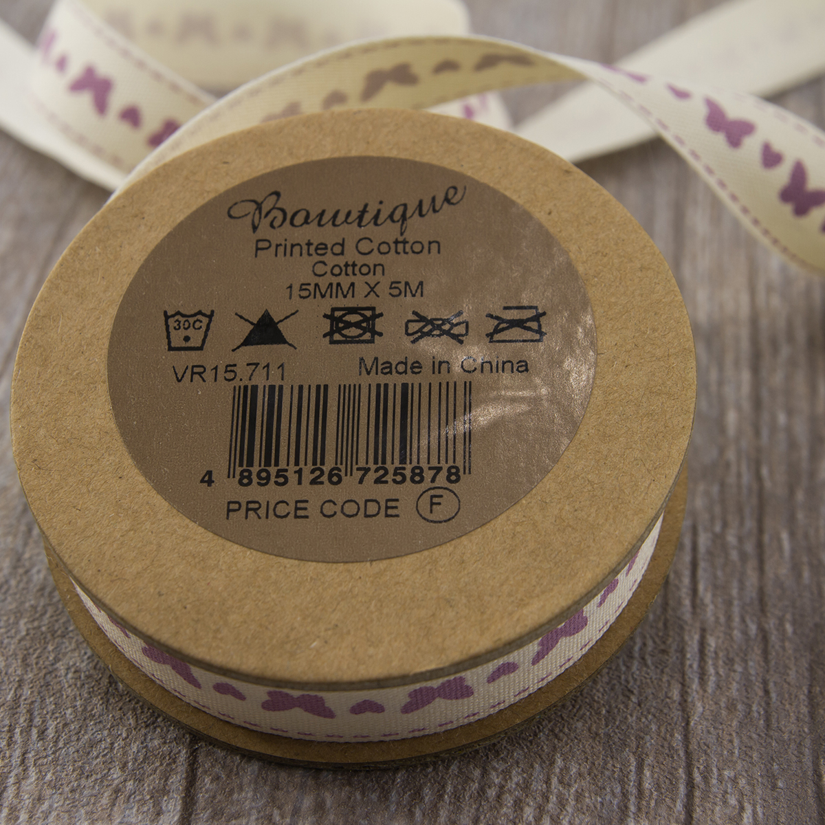 Лента хлопковая с рисунком на картонной катушке для шитья, хобби, упаковки.