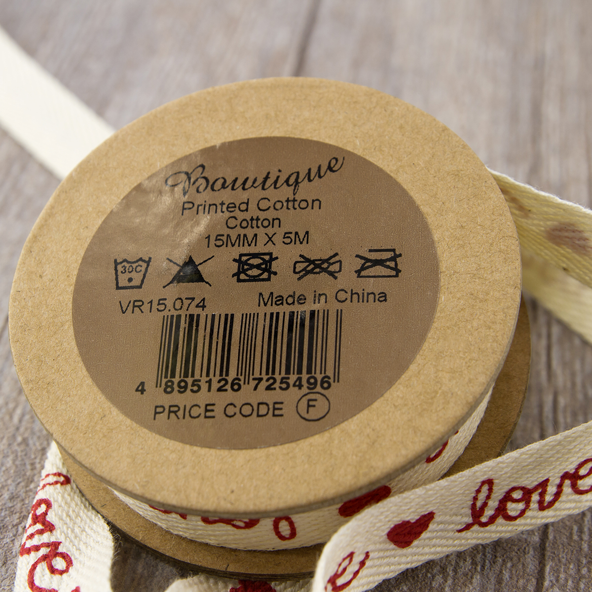 Лента хлопковая с рисунком на картонной катушке для шитья, хобби, упаковки.