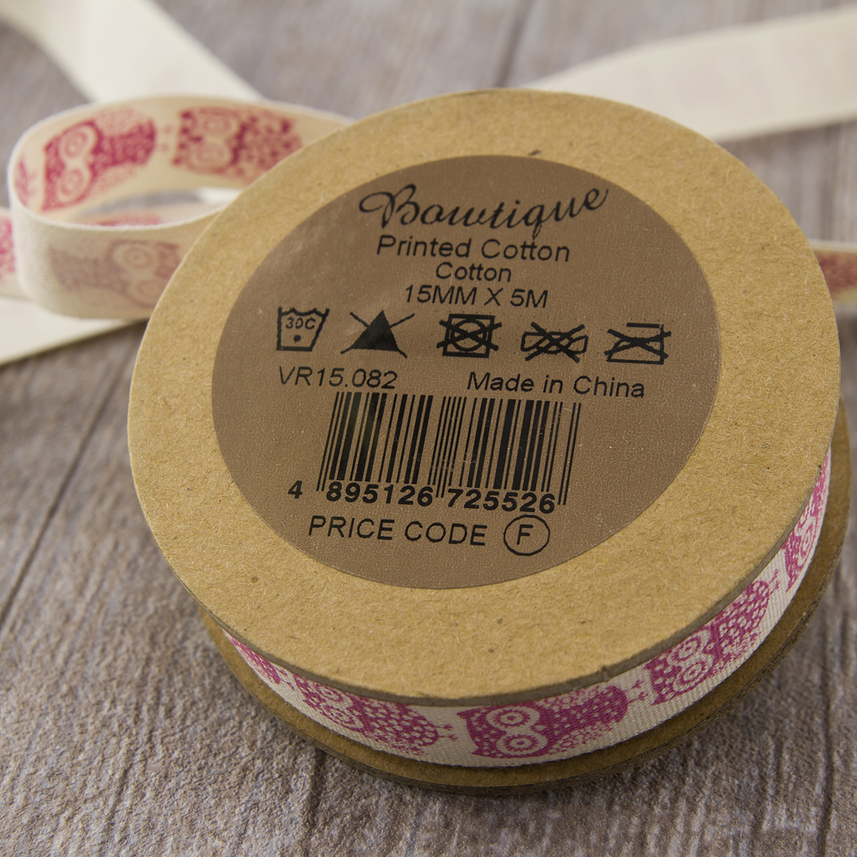 Лента хлопковая с рисунком на картонной катушке для шитья, хобби, упаковки.