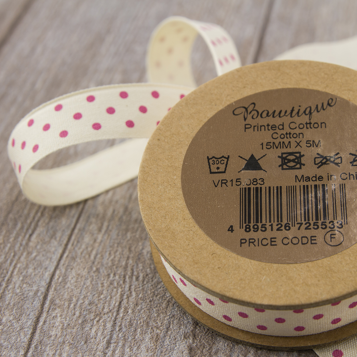 Лента хлопковая с рисунком на картонной катушке для шитья, хобби, упаковки.