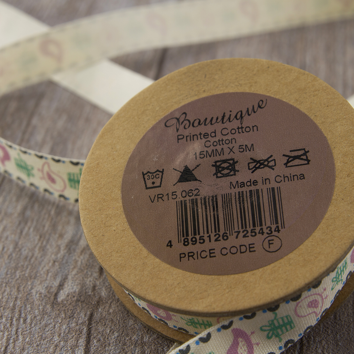 Лента хлопковая с рисунком на картонной катушке для шитья, хобби, упаковки.