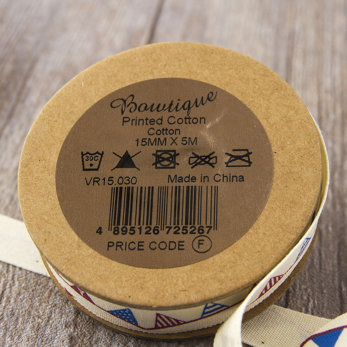 Лента хлопковая с рисунком на картонной катушке для шитья, хобби, упаковки.