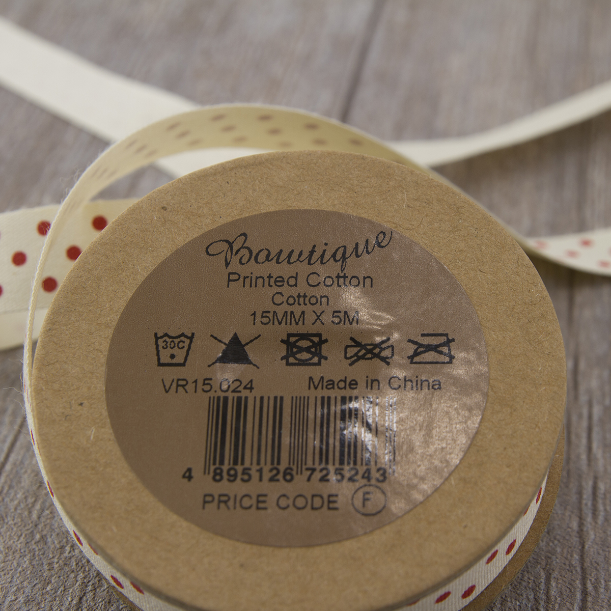 Лента хлопковая с рисунком на картонной катушке для шитья, хобби, упаковки.